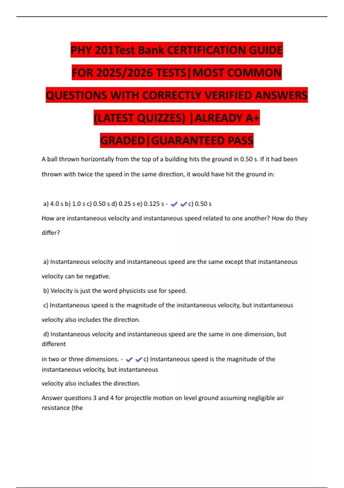 QUESTIONS WITH CORRECTLY VERIFIED ANSWERS