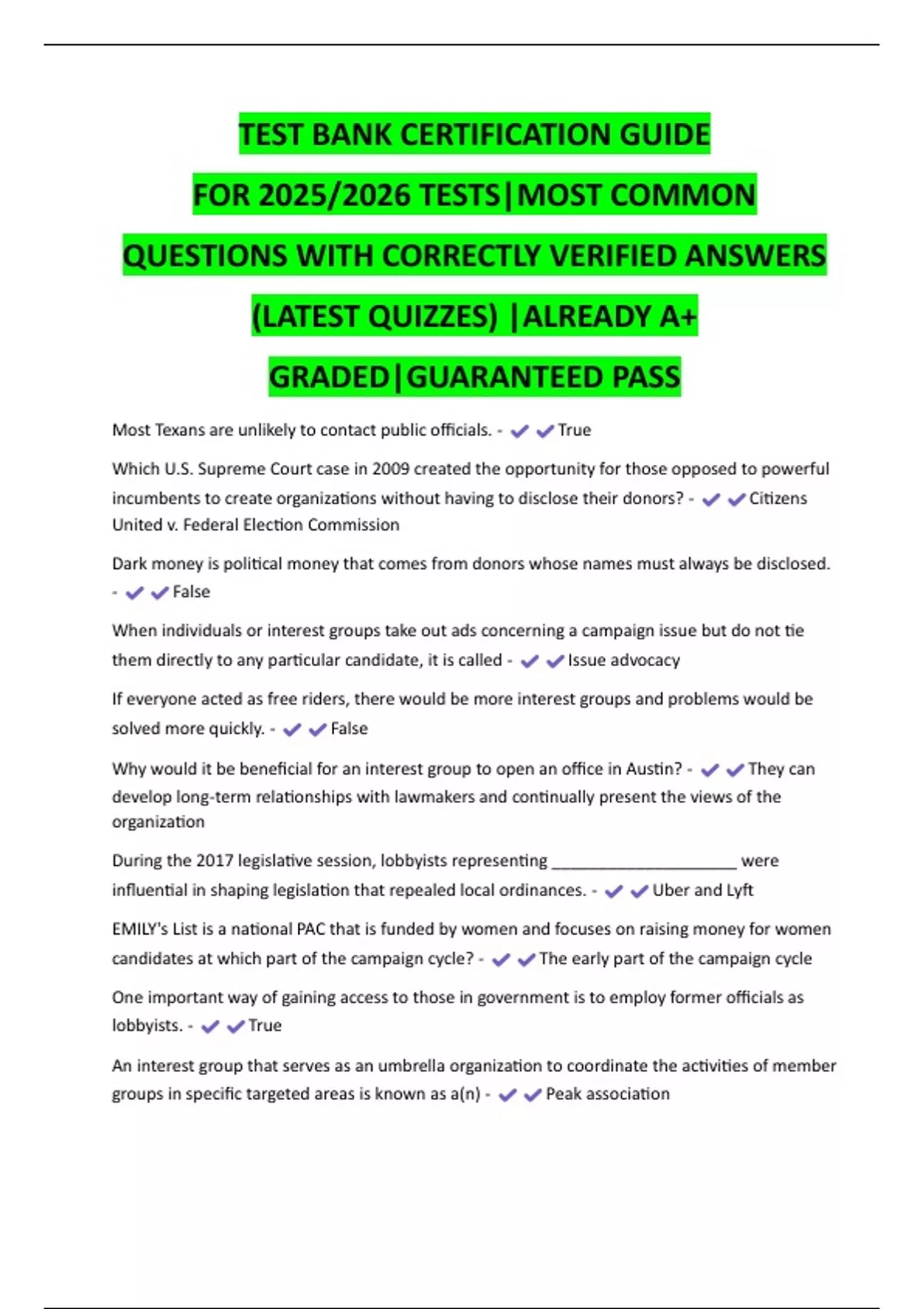 QUESTIONS WITH CORRECTLY VERIFIED ANSWERS