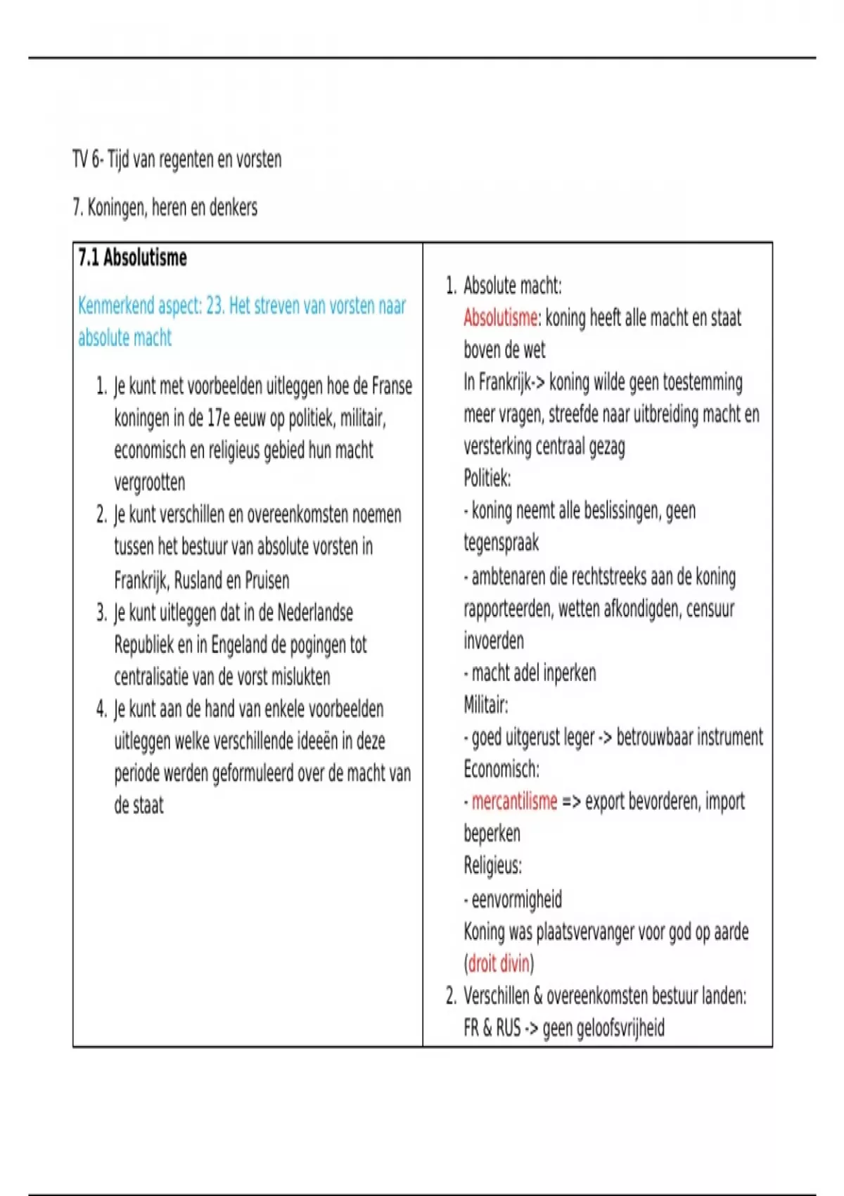 Kenmerkend aspect: 23. Het streven van vorsten naar Absolutisme: koning heeft alle macht en staat