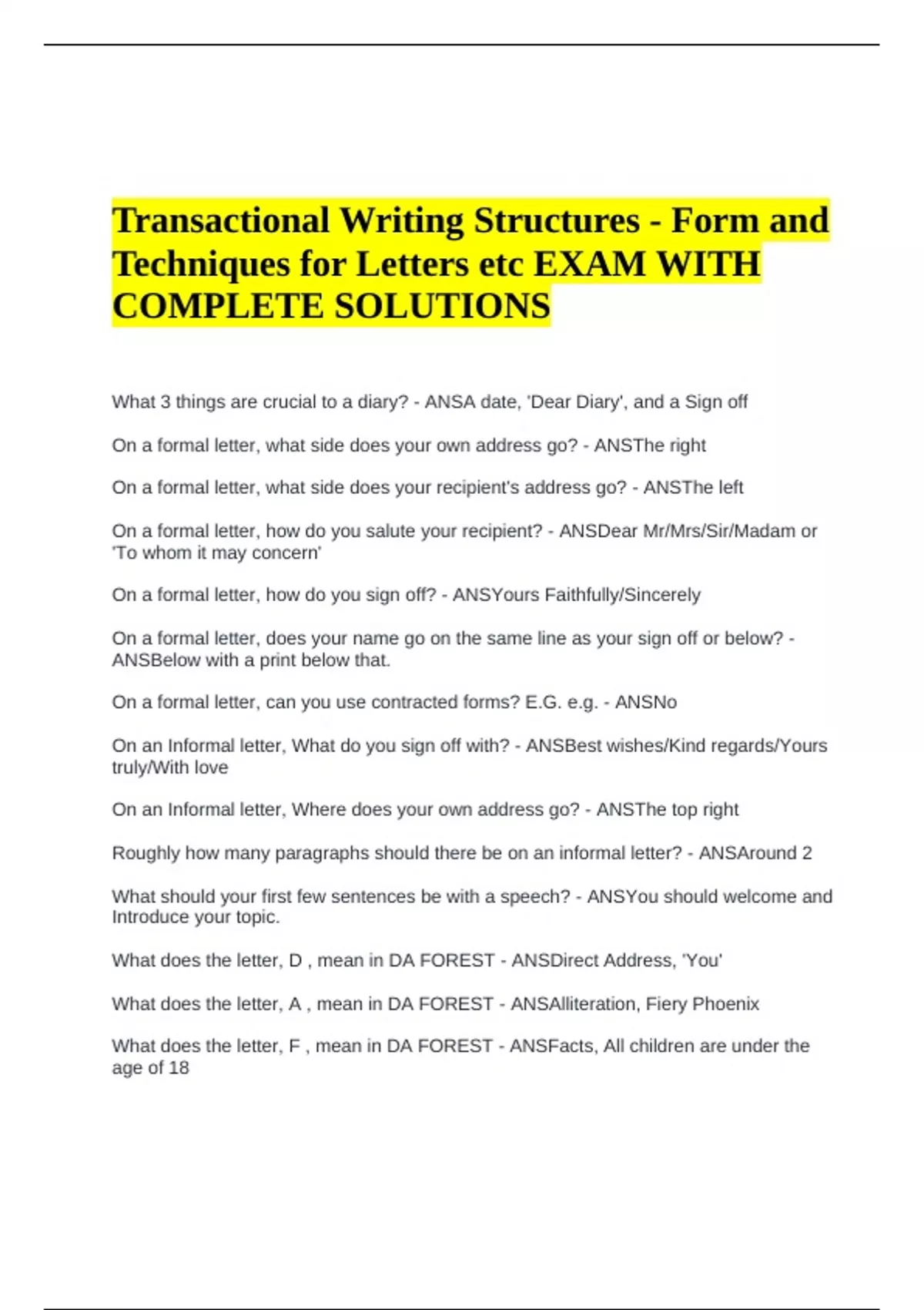 Techniques for Letters etc EXAM WITH