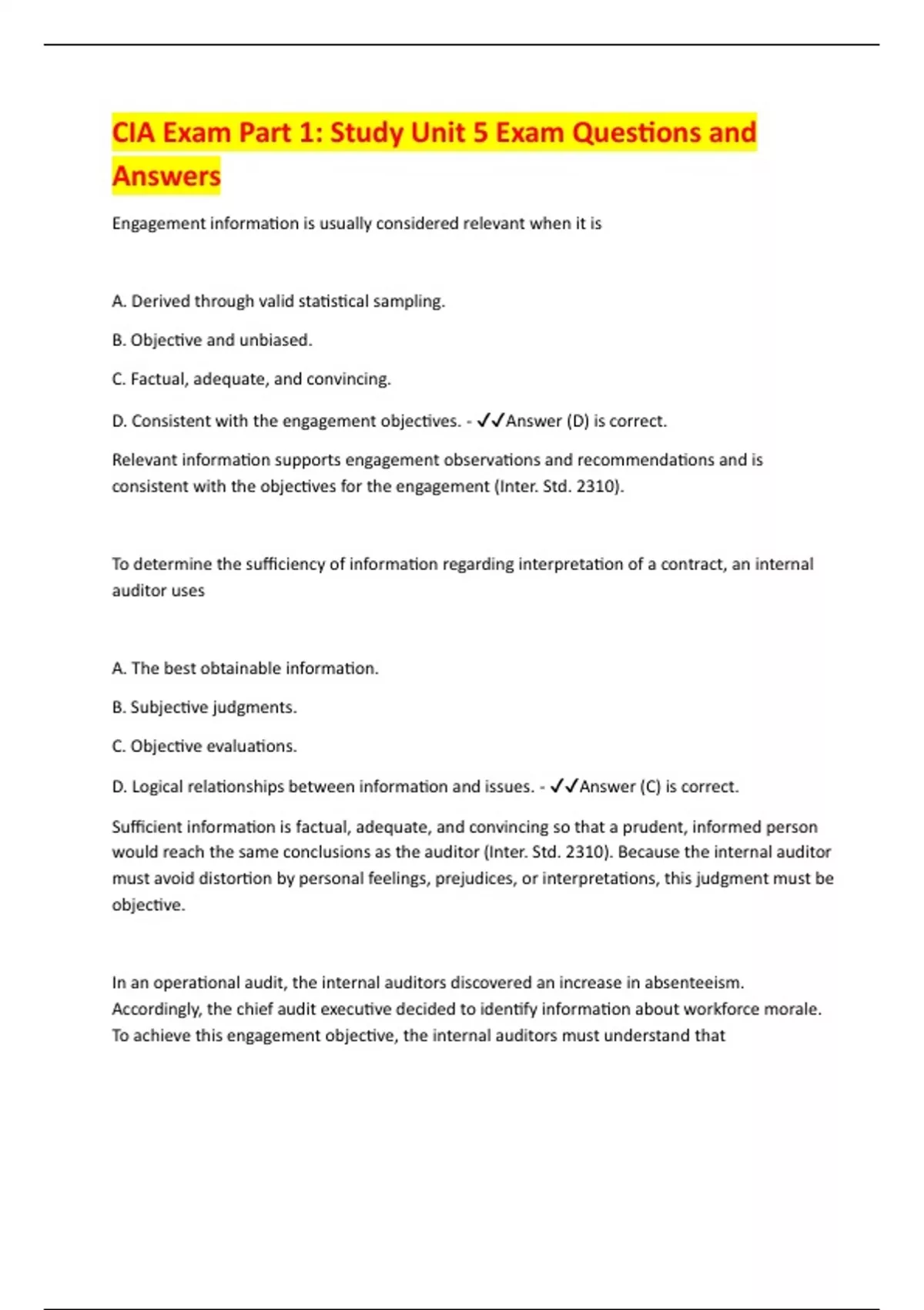CIA Exam Part 1: Study Unit 5 Exam Questions and