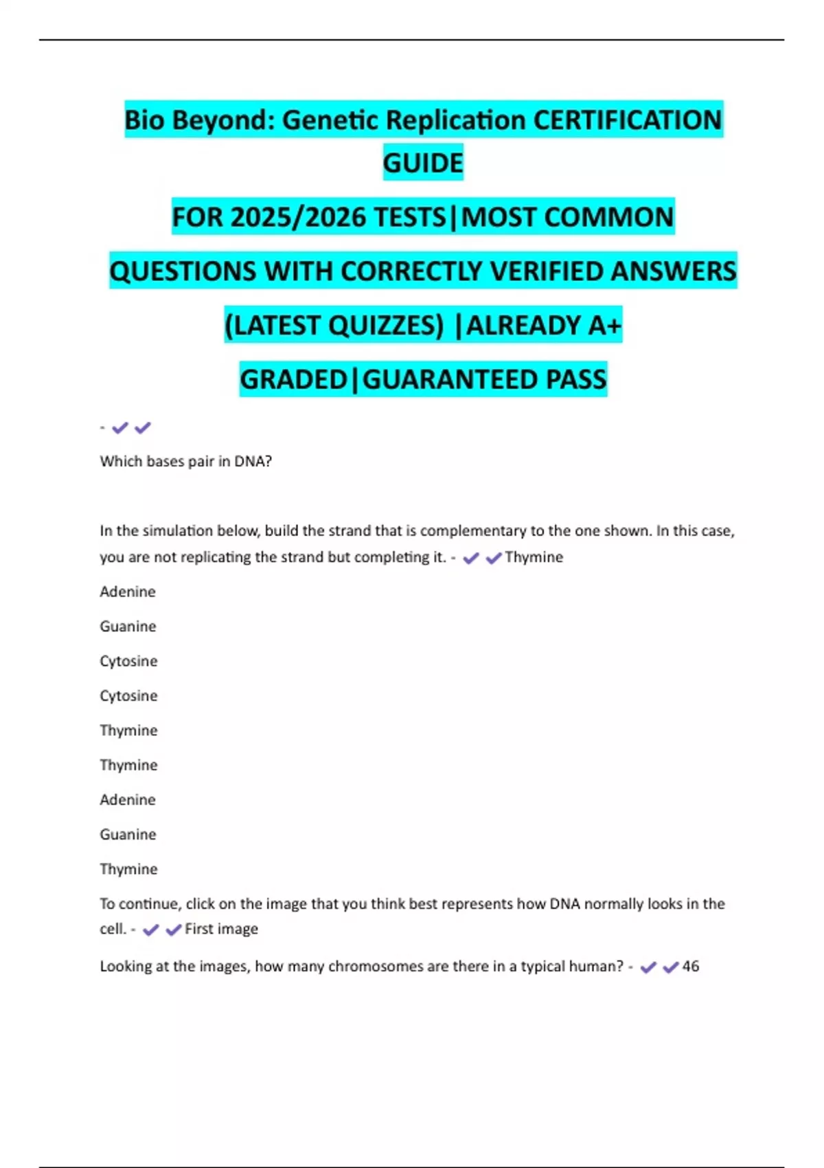 Bio Beyond: Genetic Replication CERTIFICATION Updated Final Prep 2025/26 | Correct Answers Included | A+ Score