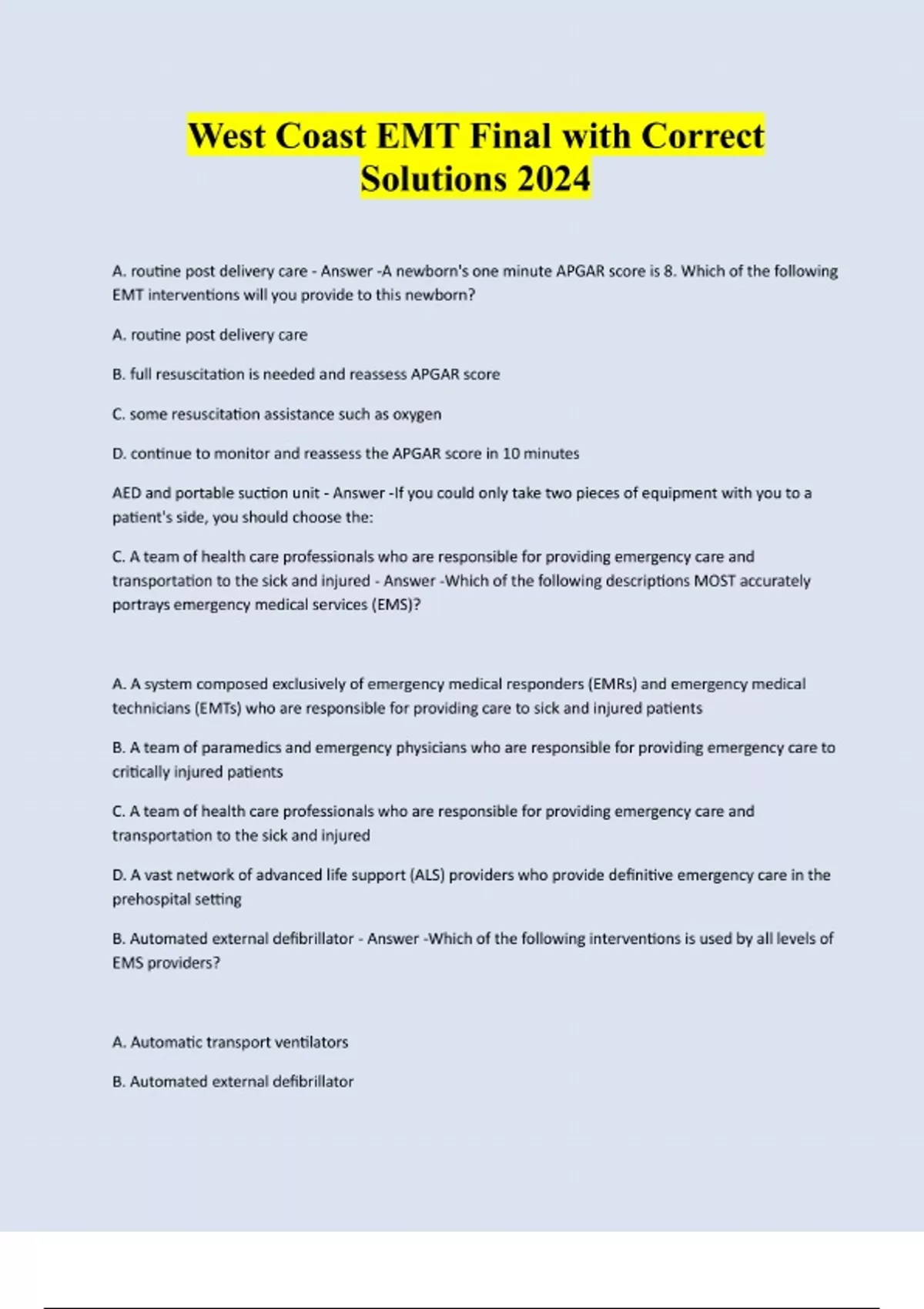 West Coast EMT Final with Correct Solutions 2025/2026
