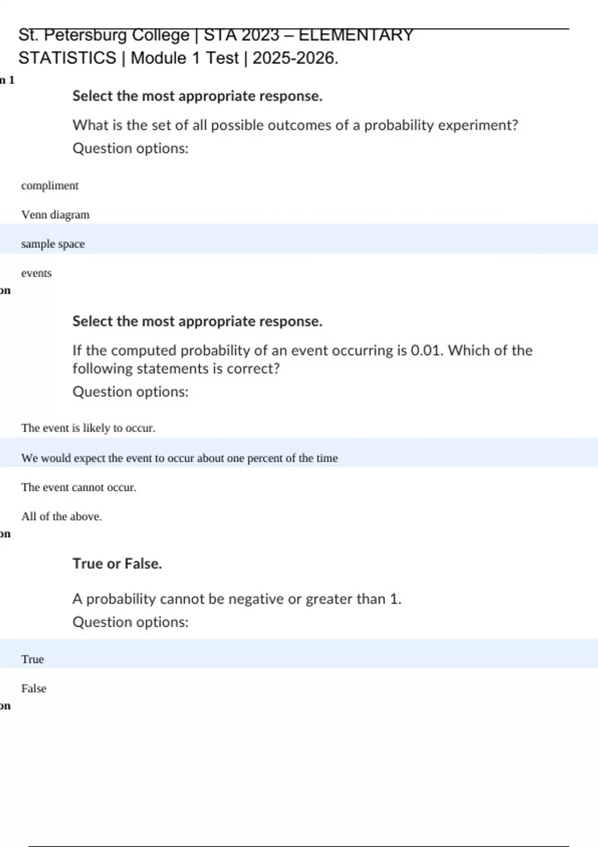 St. Petersburg College | STA 2023 – ELEMENTARY