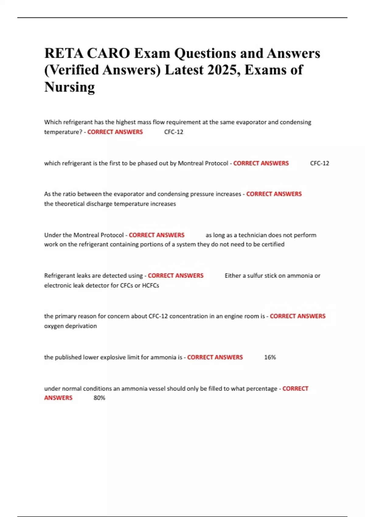 RETA CARO Exam Questions and Answers