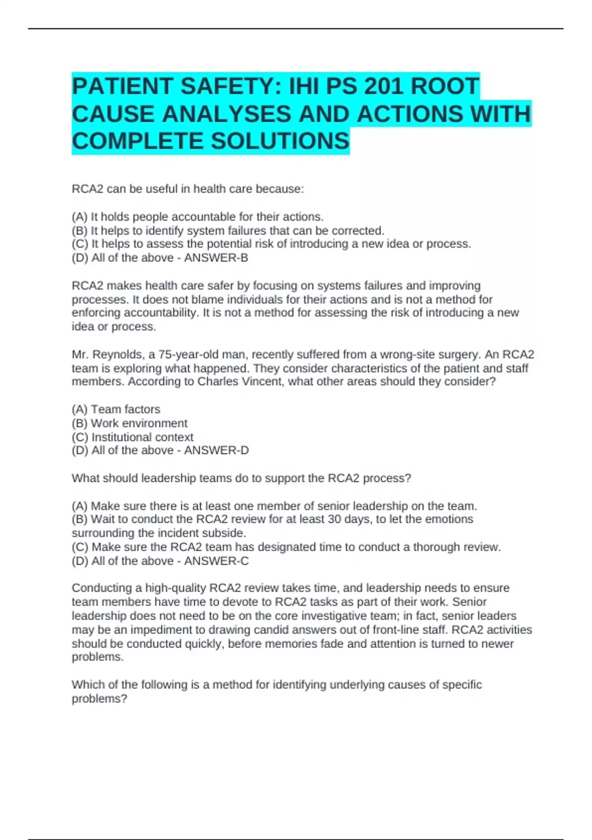 RCA2 makes health care safer by focusing on systems failures and improving