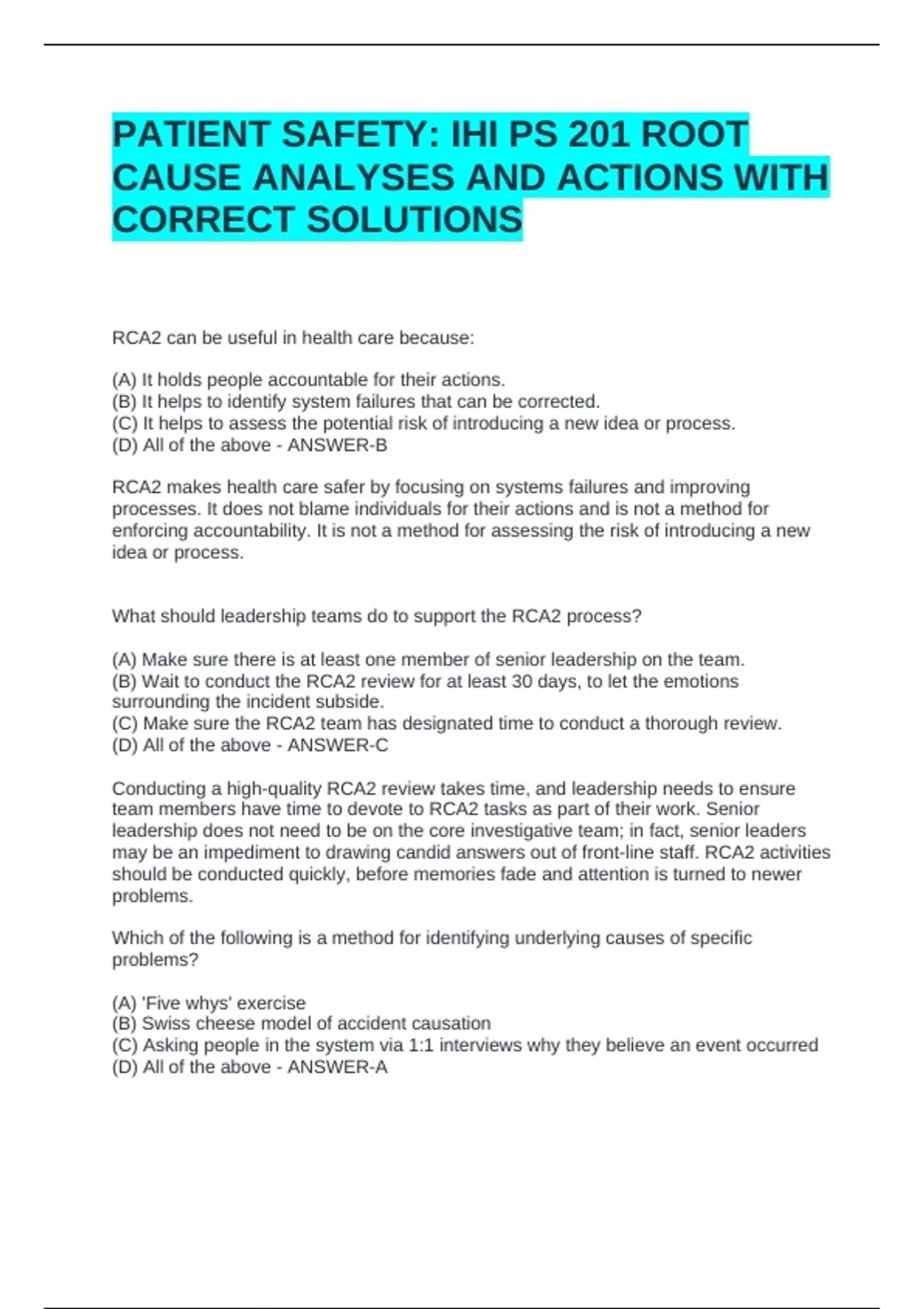Conducting a high-quality RCA2 review takes time, and leadership needs to ensure