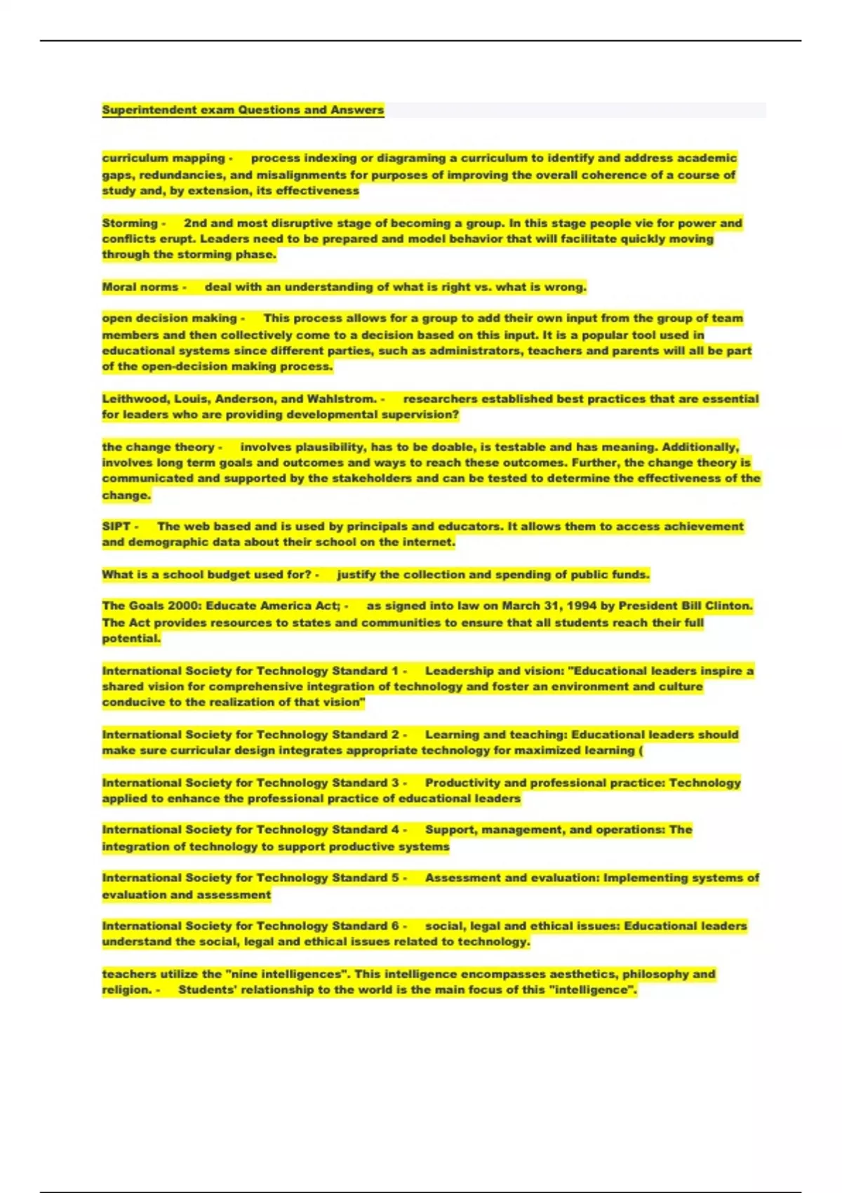 Superintendent exam Questions and A