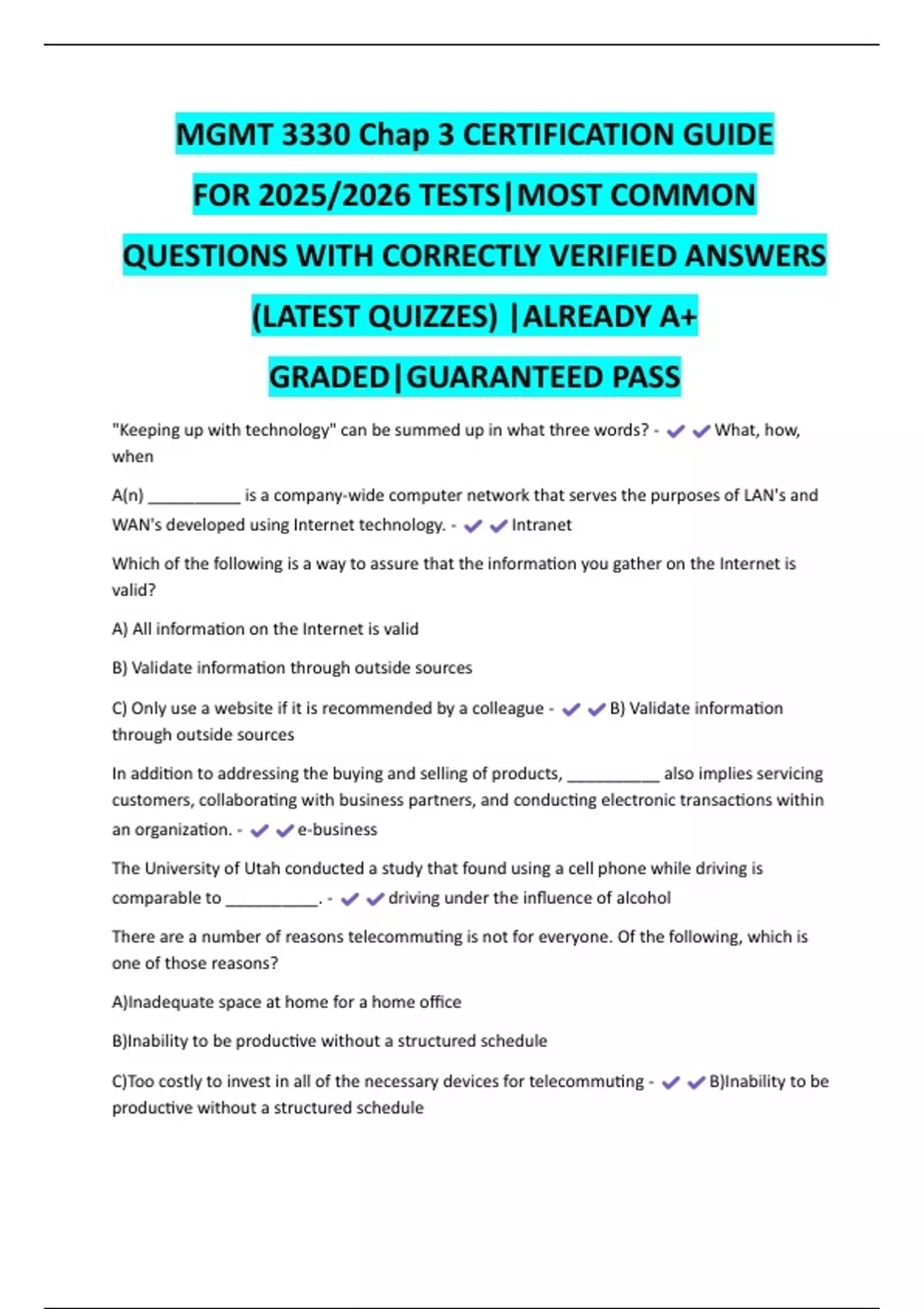 QUESTIONS WITH CORRECTLY VERIFIED ANSWERS
