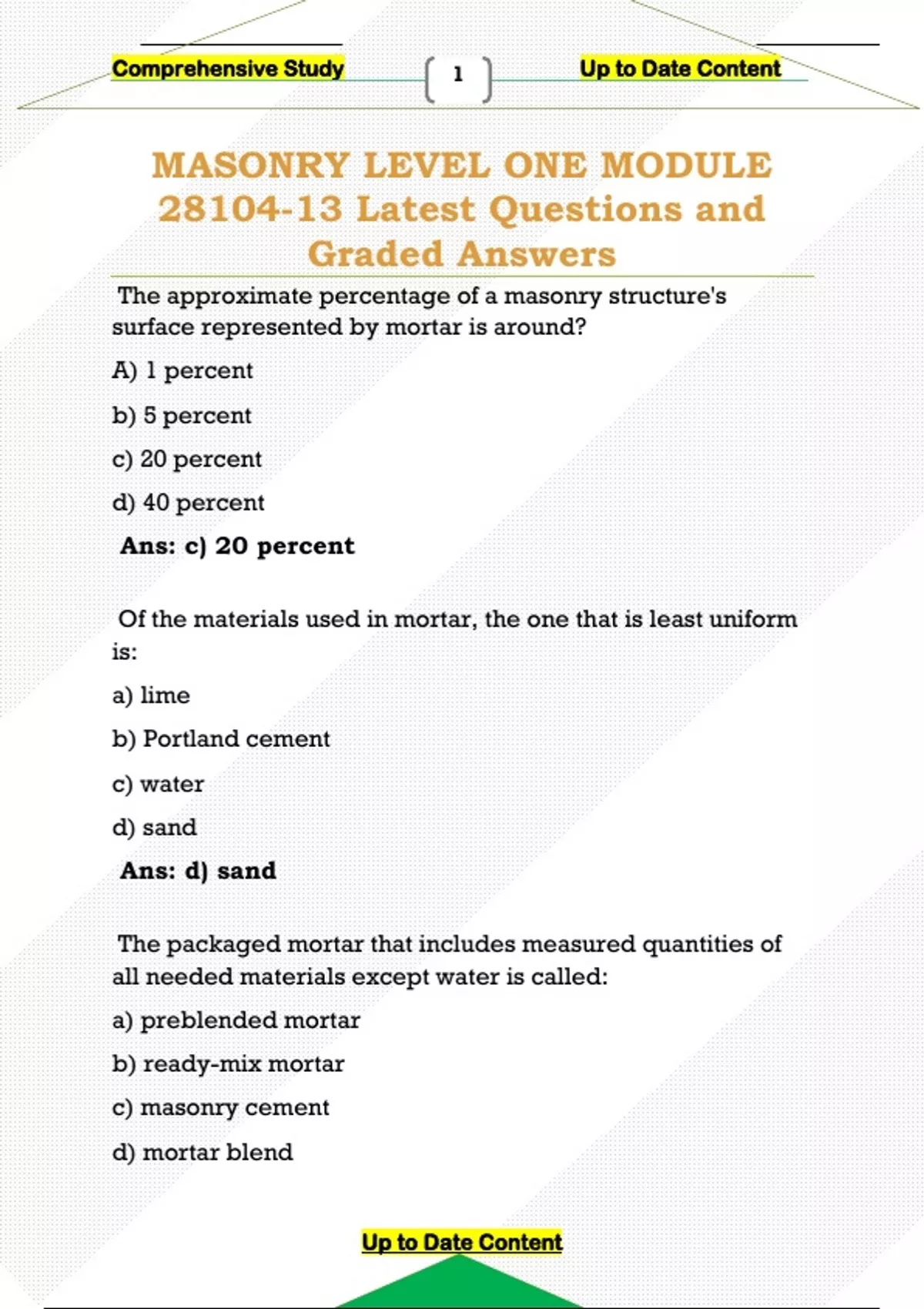 MASONRY LEVEL ONE MODULE 28104-13 Latest Questions and Graded Answers