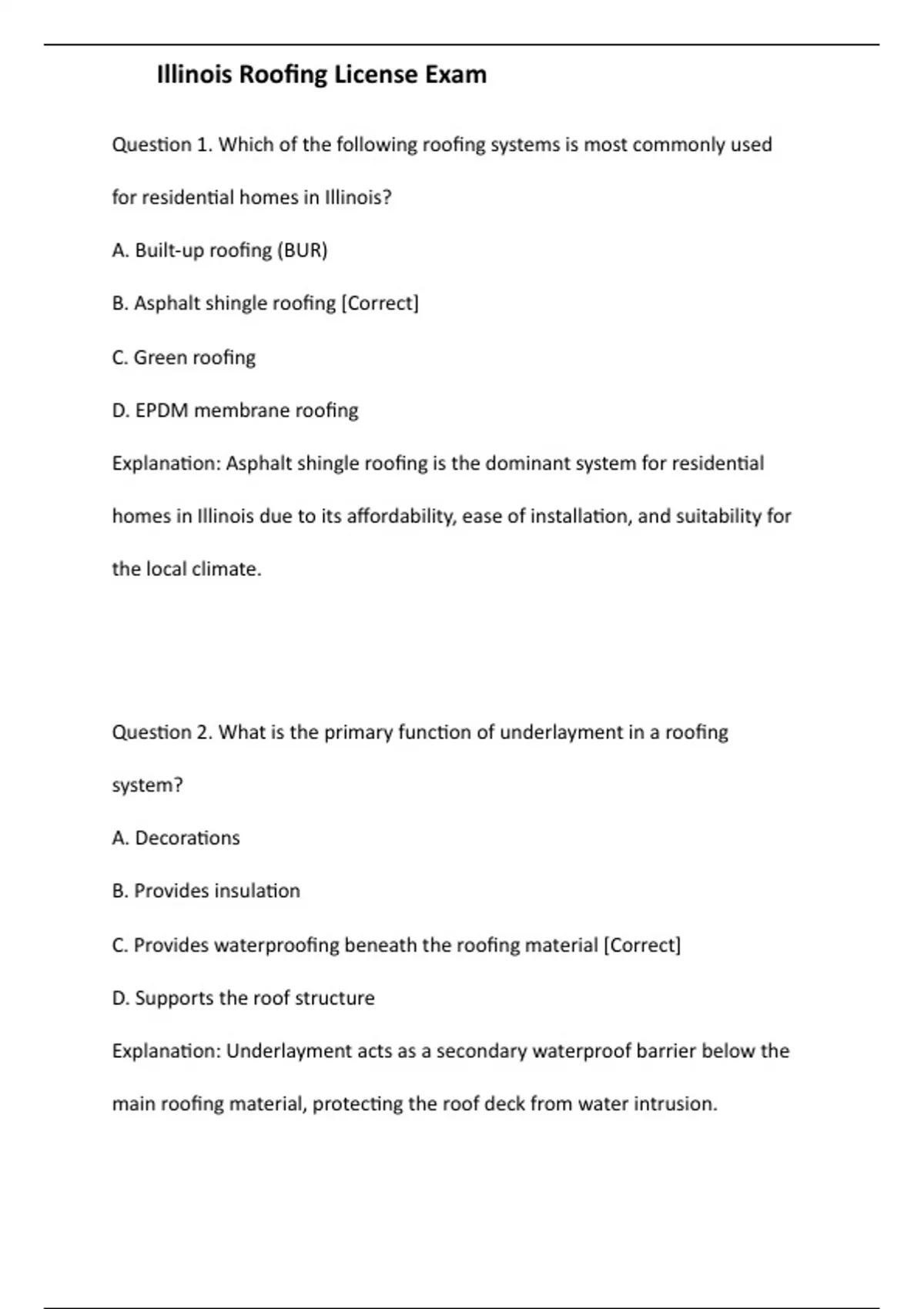 Explanation: Underlayment acts as a secondary waterproof barrier below the