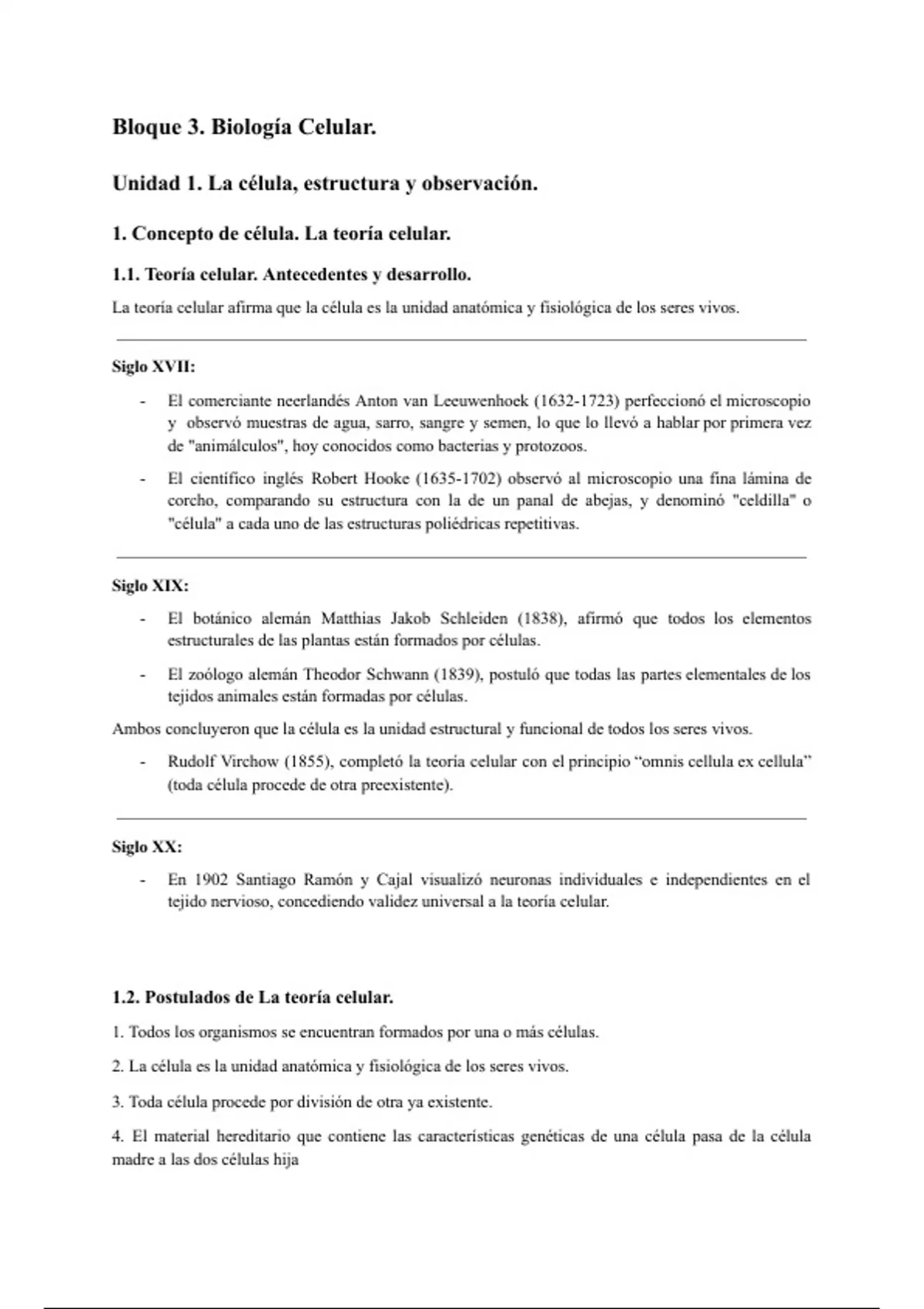 1.1. Teoría celular. Antecedentes y desarrollo.