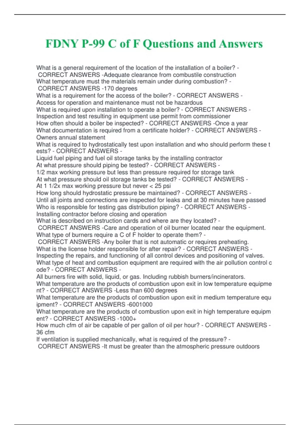 FDNY P-99 C of F Questions and Answers