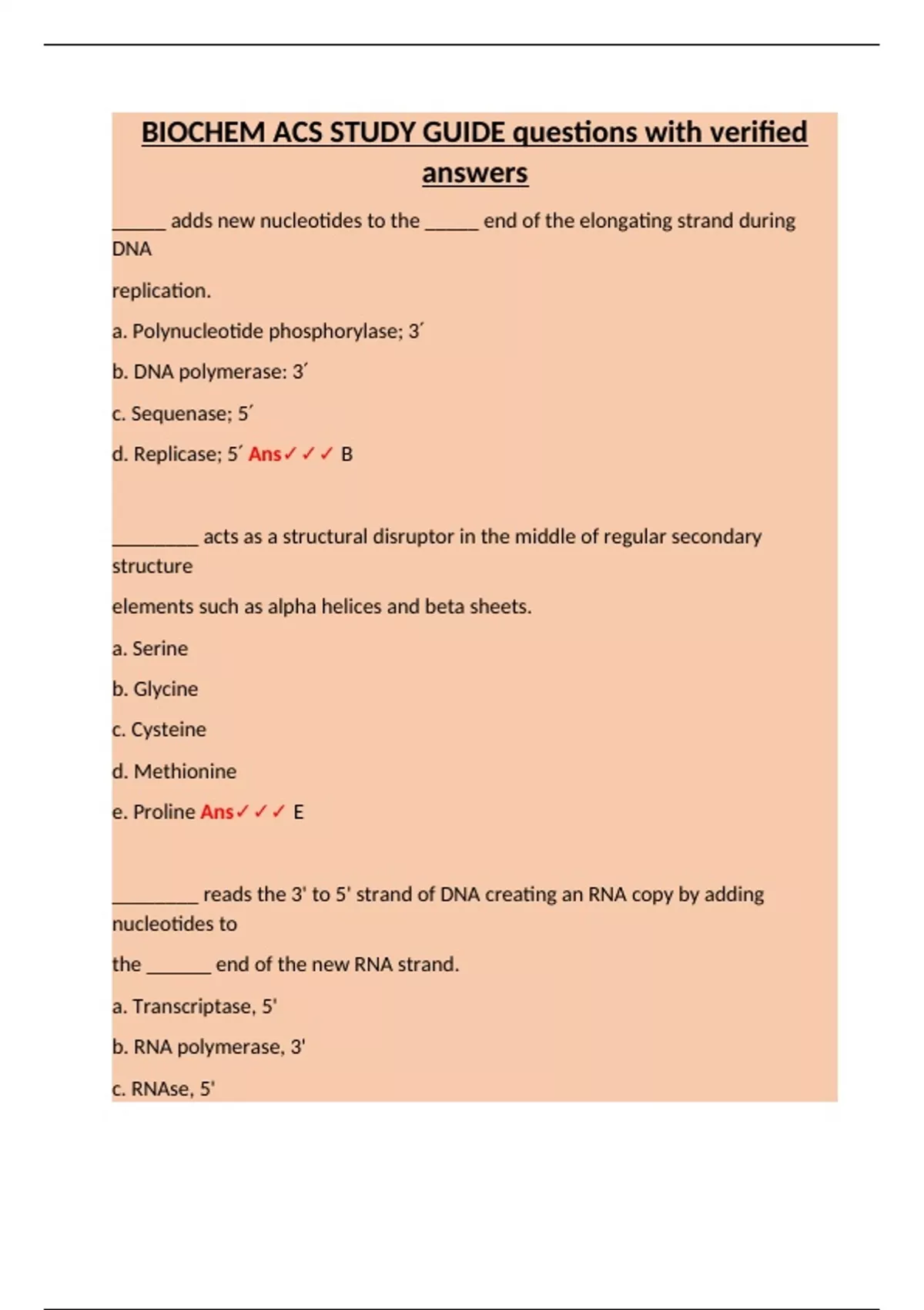 BIOCHEM ACS STUDY GUIDE questions with verified answers