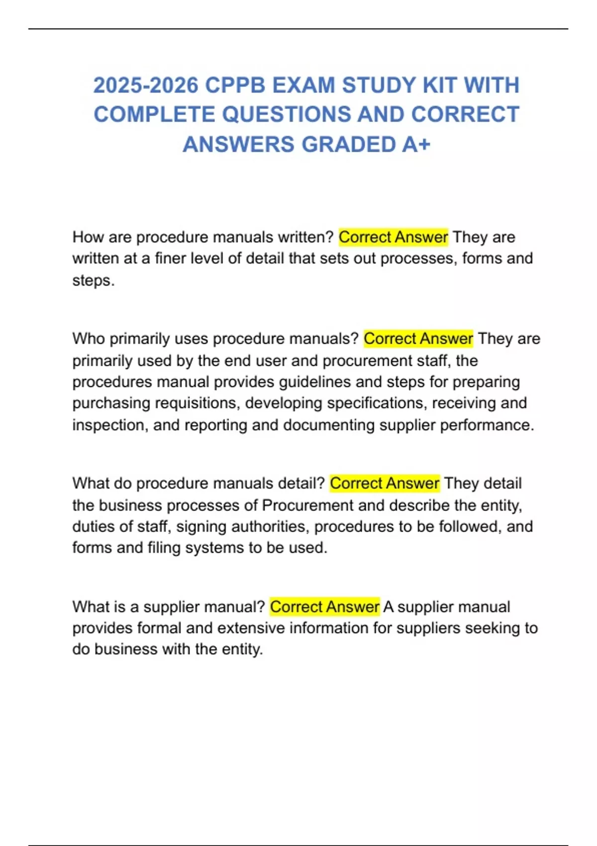 What is a supplier manual? Correct Answer A supplier manual