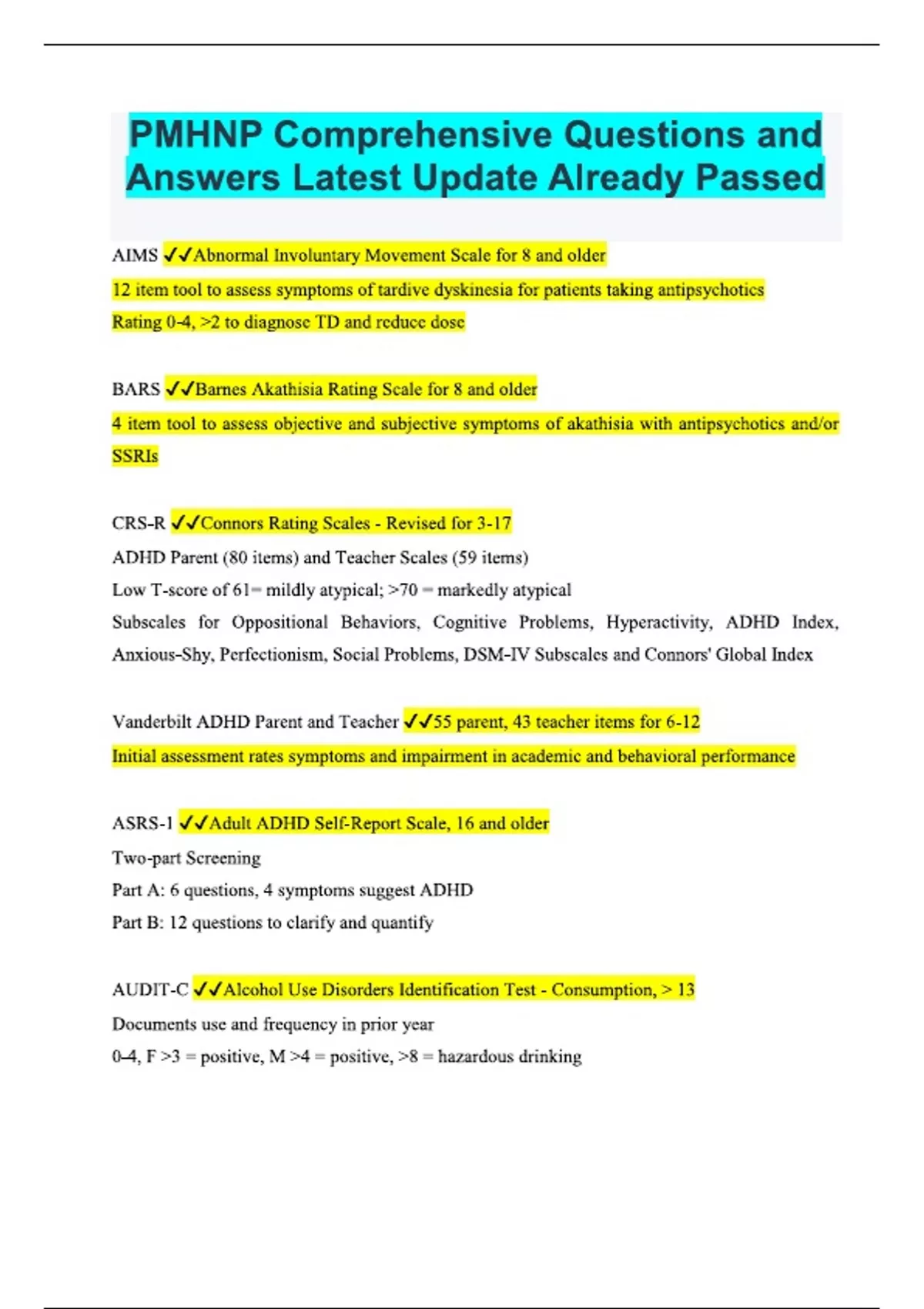Pmhnp comprehensive questions and answers latest update already passed