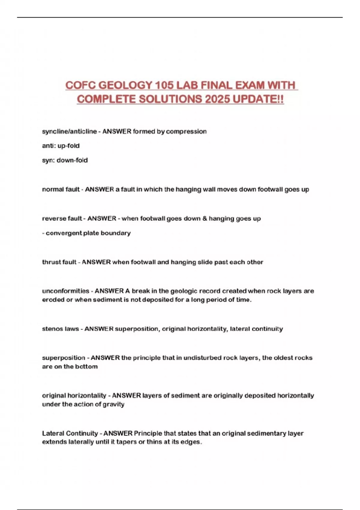 COFC GEOLOGY 105 LAB FINAL EXAM WITH COMPLETE SOLUTIONS 2025 UPDATE!!...