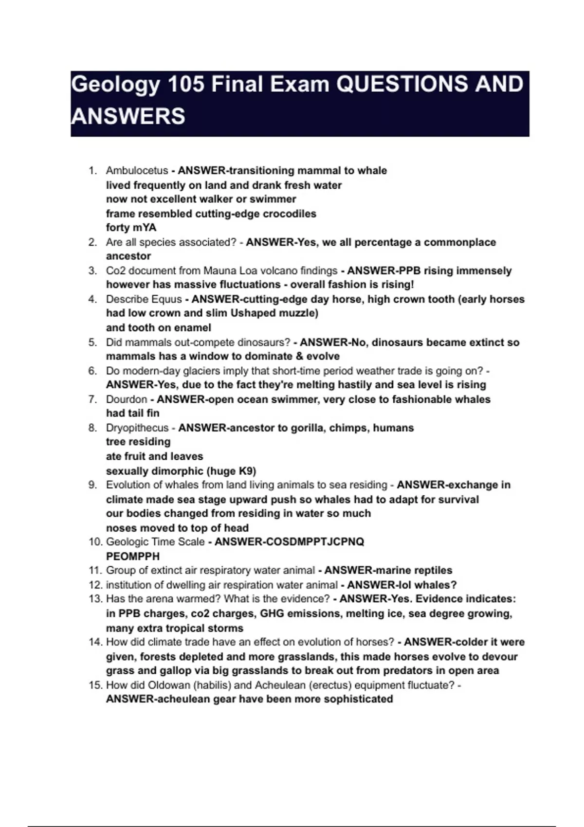Geology 105 Final Exam QUESTIONS AND