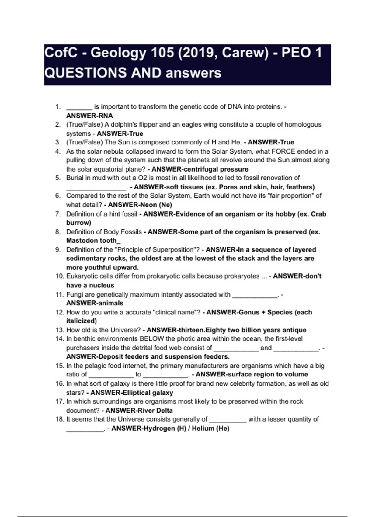 CofC - Geology 105 (2019, Carew) - PEO 1