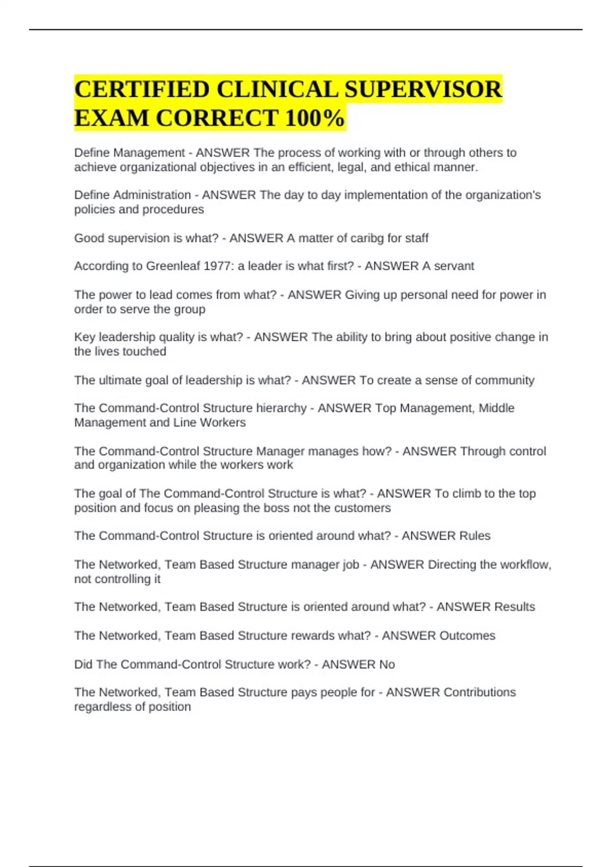 CERTIFIED CLINICAL SUPERVISOR EXAM CORRECT 100%