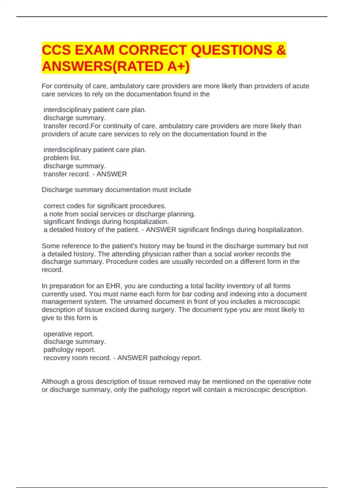 or discharge summary, only the pathology report will contain a microscopic description.