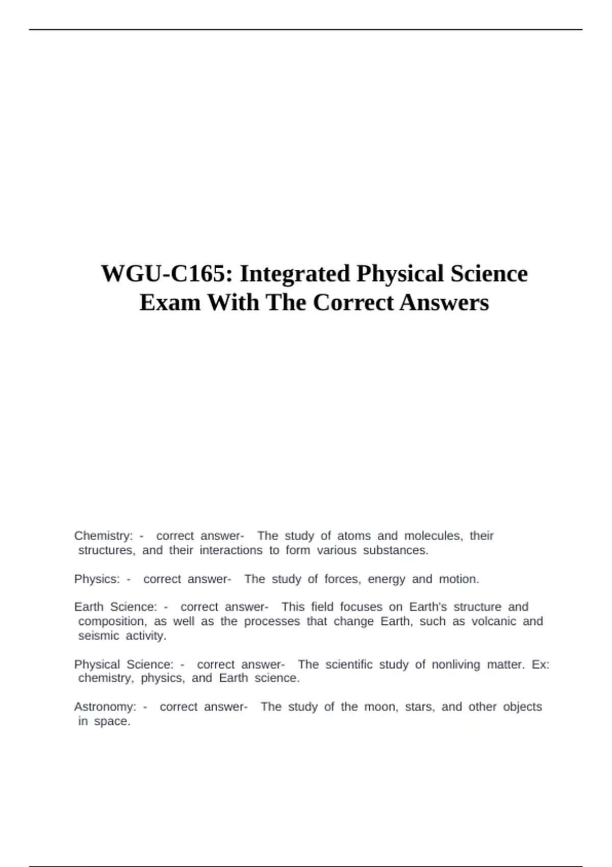 Physical cScience: c- c ccorrect canswer- c cThe cscientific cstudy cof cnonliving cmatter. cEx: