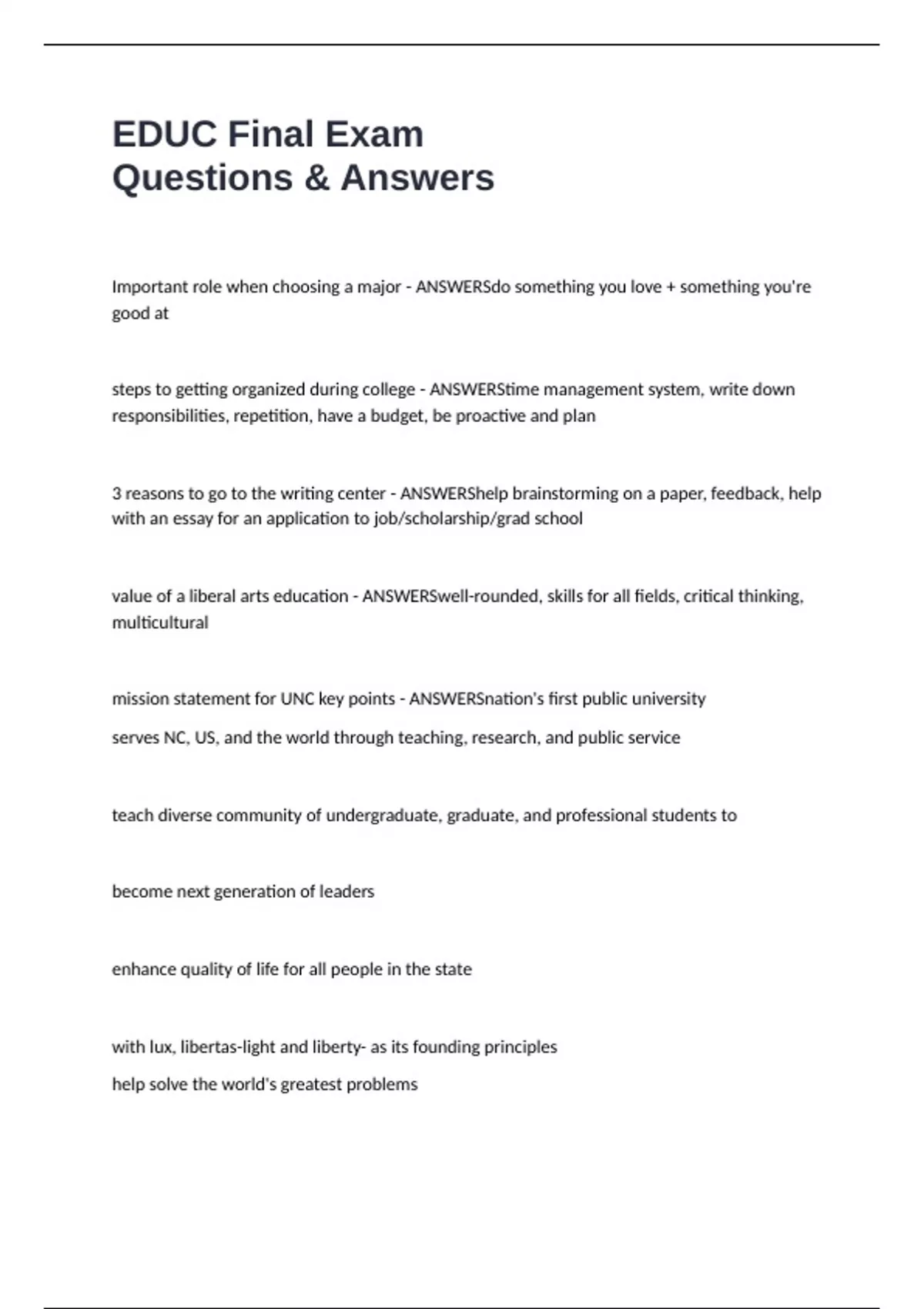 mission statement for UNC key points - ANSWERSnation's first public university