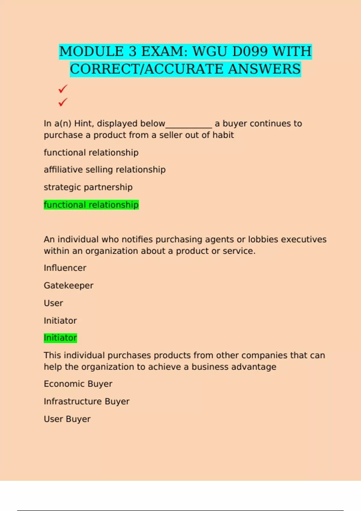 MODULE 3 EXAM: WGU D099 WITH CORRECT/ACCURATE ANSWERS