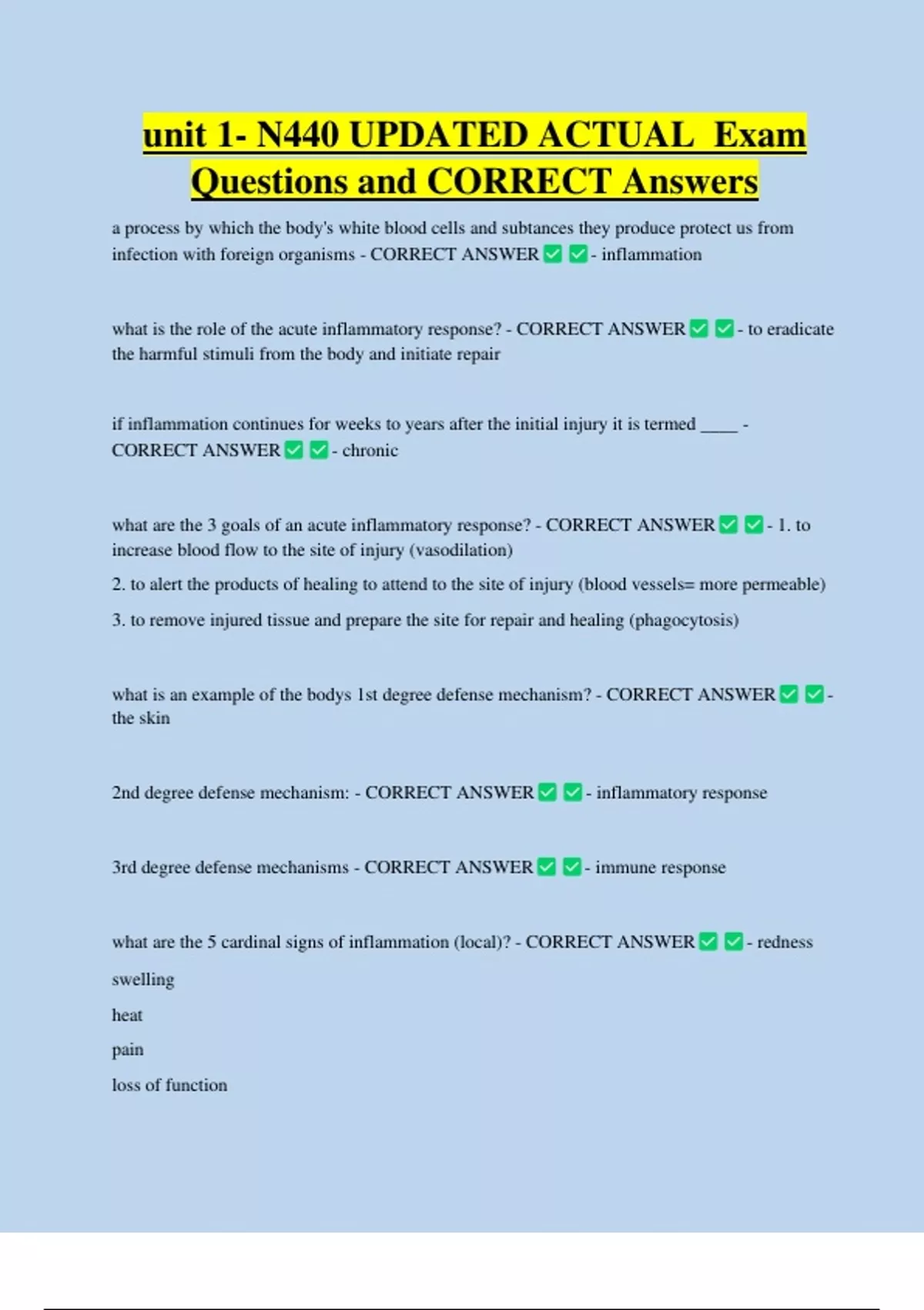 2nd degree defense mechanism: - CORRECT ANSWER - inflammatory response