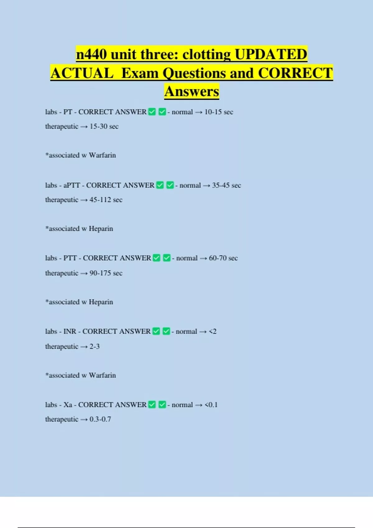 labs - Xa - CORRECT ANSWER - normal → <0.1