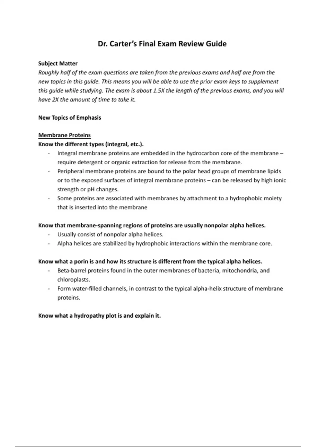 Dr. Carter’s Final Exam Review Guide
