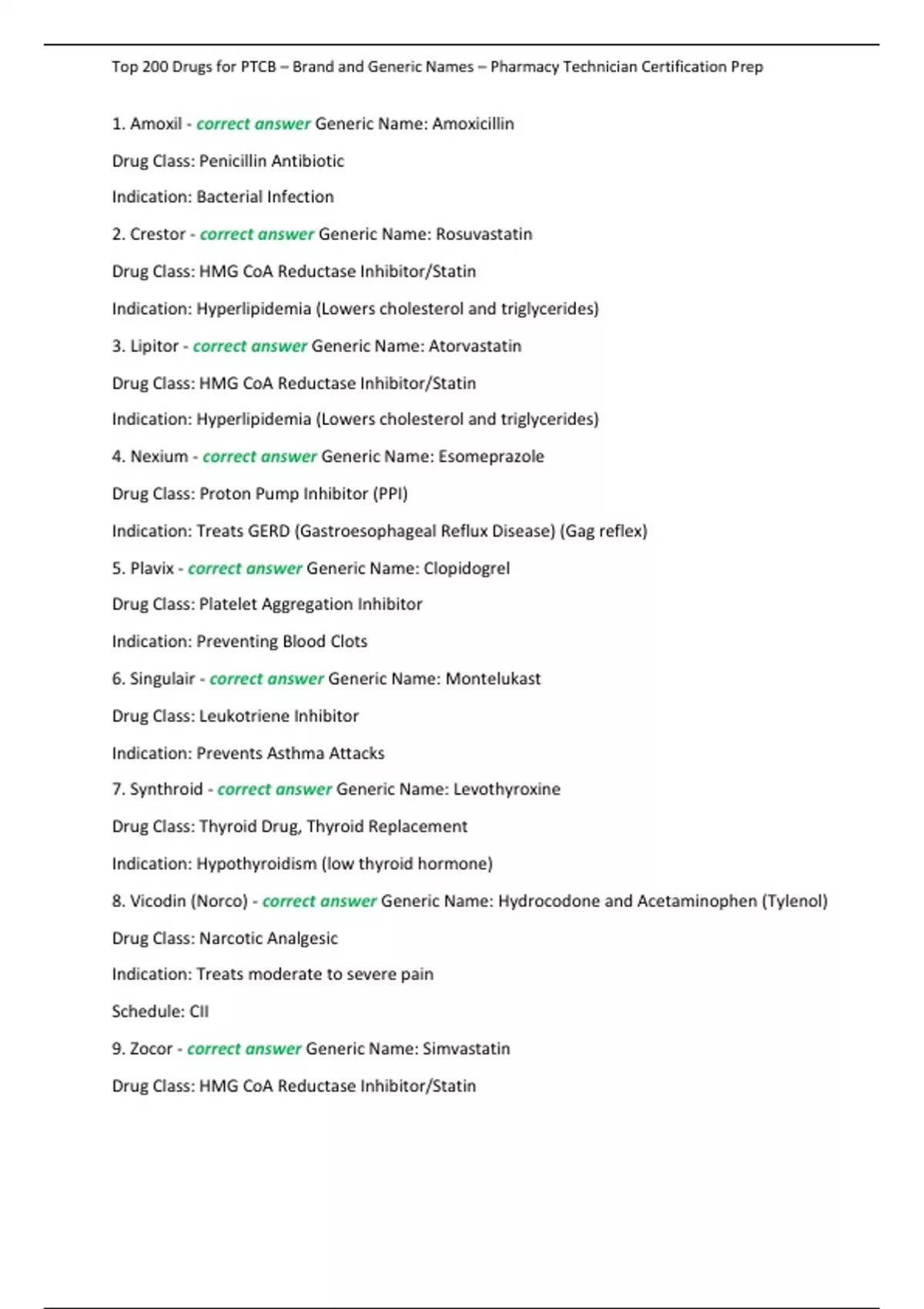 , Top 200 Drugs for PTCB – Brand and Generic Names – Pharmacy Technician Certification Prep