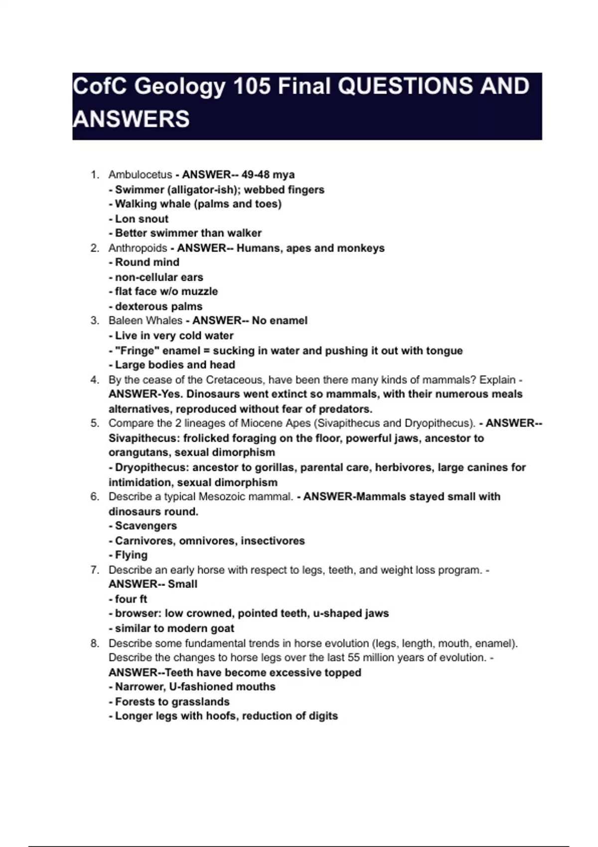 , 9. Describe the ancestor of Primates. - ANSWER-- Purgatorius
