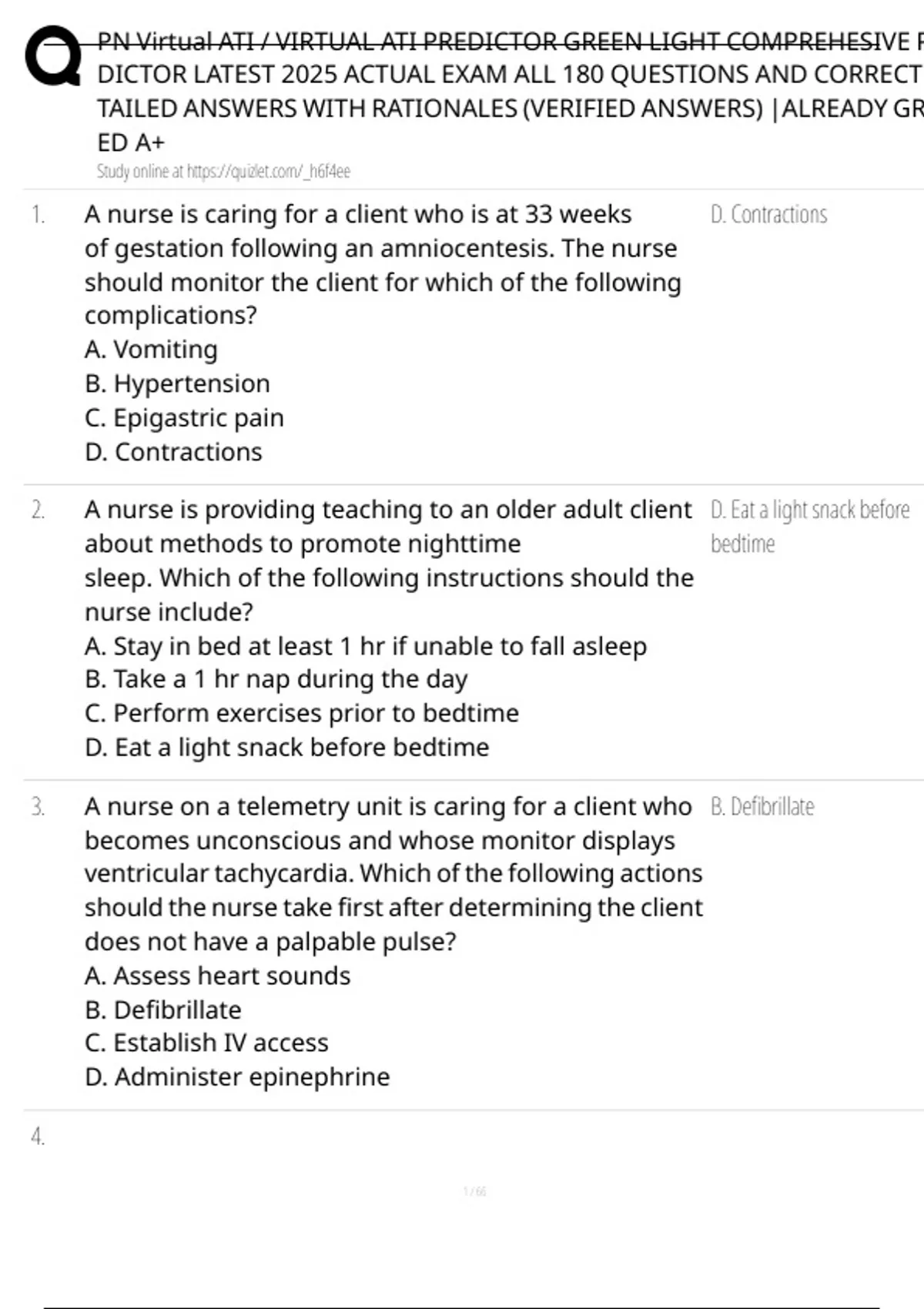 3. A nurse on a telemetry unit is caring for a client who B. Defibrillate
