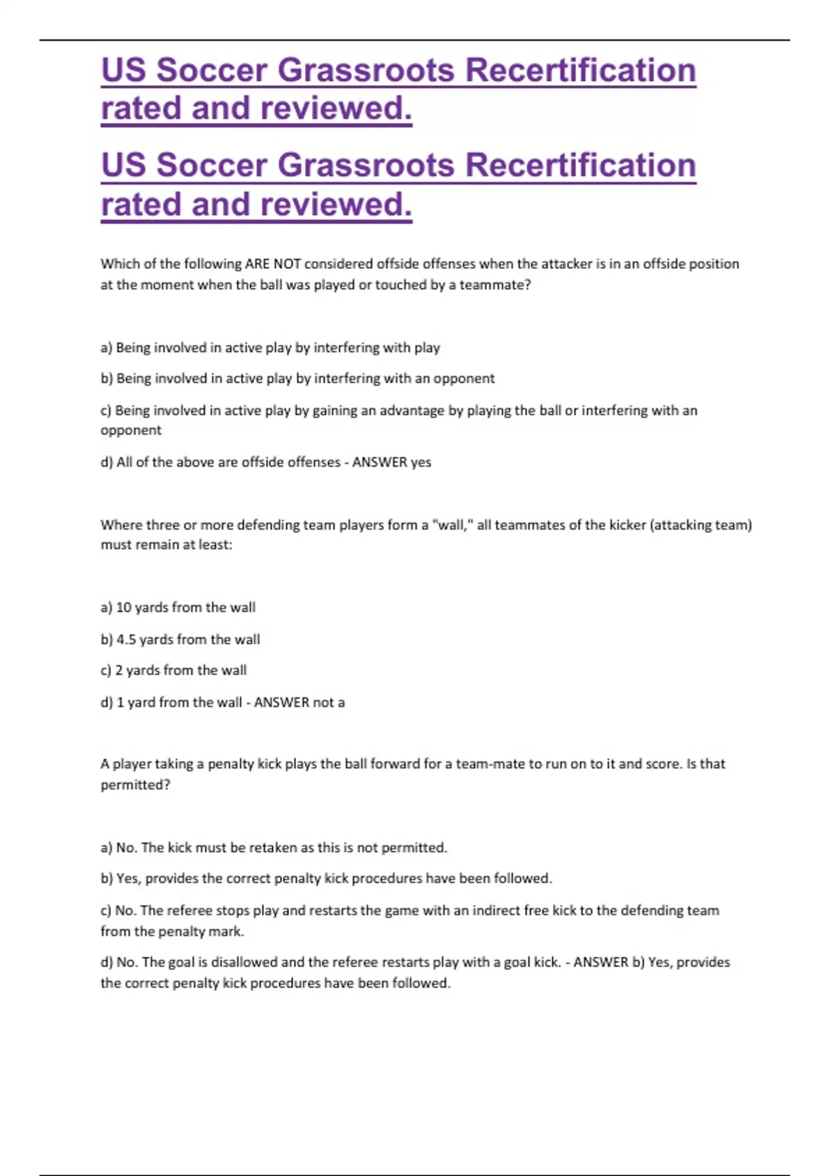 US Soccer Grassroots Recertification rated and reviewed.