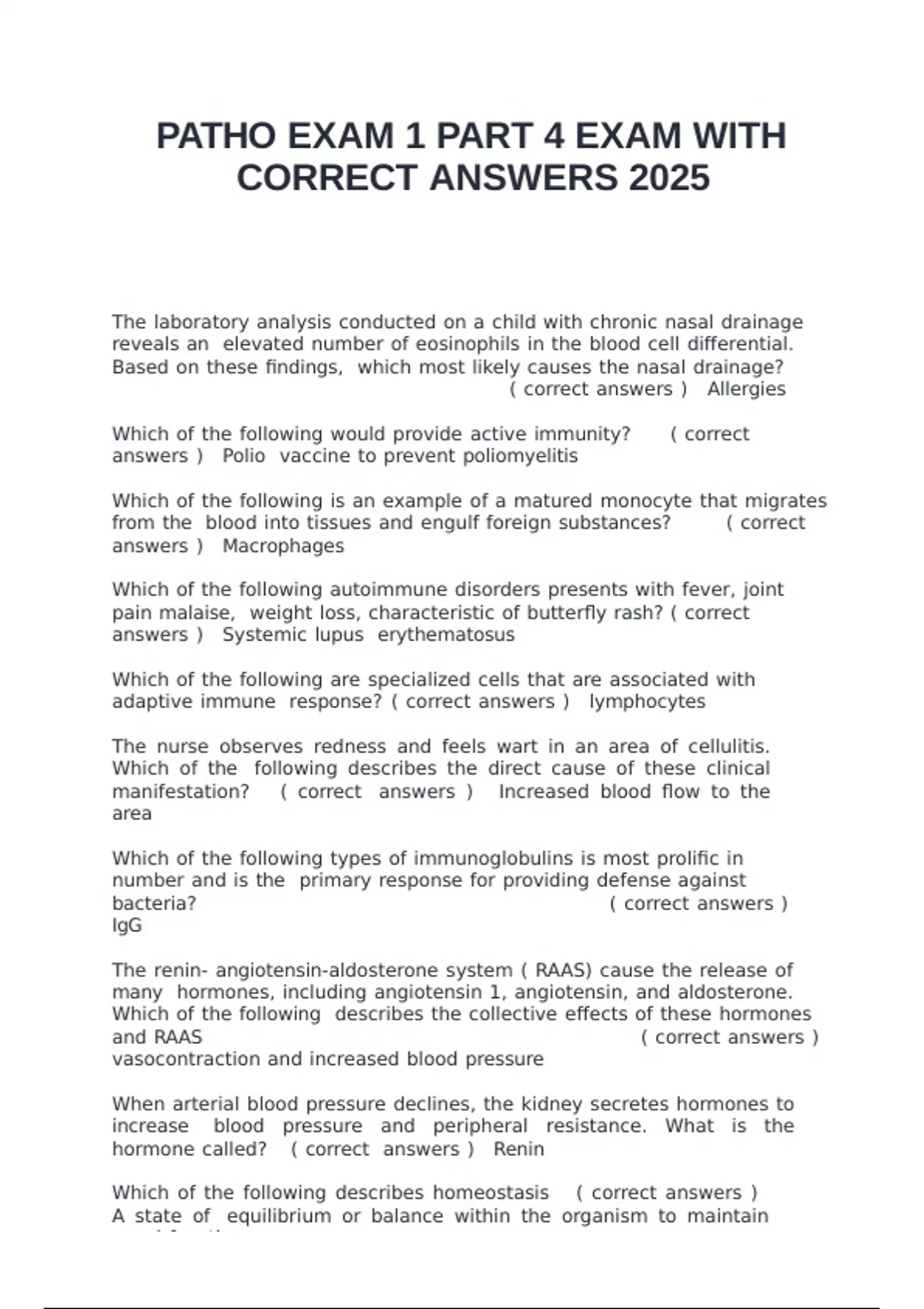 PATHO EXAM 1 PART 4 EXAM WITH CORRECT ANSWERS 2025
