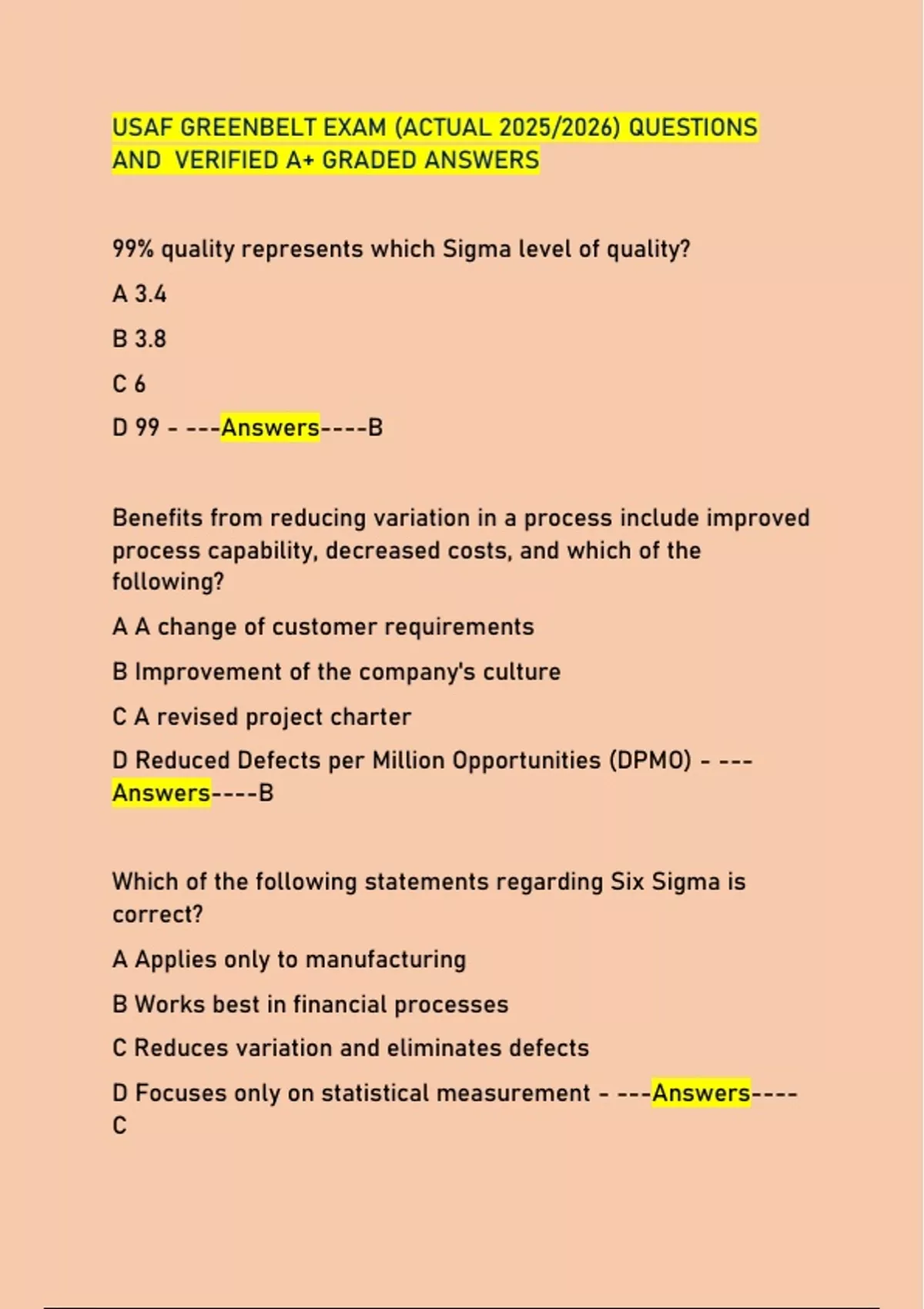 D Design for Six Sigma (DFSS) - ---Answers----B
