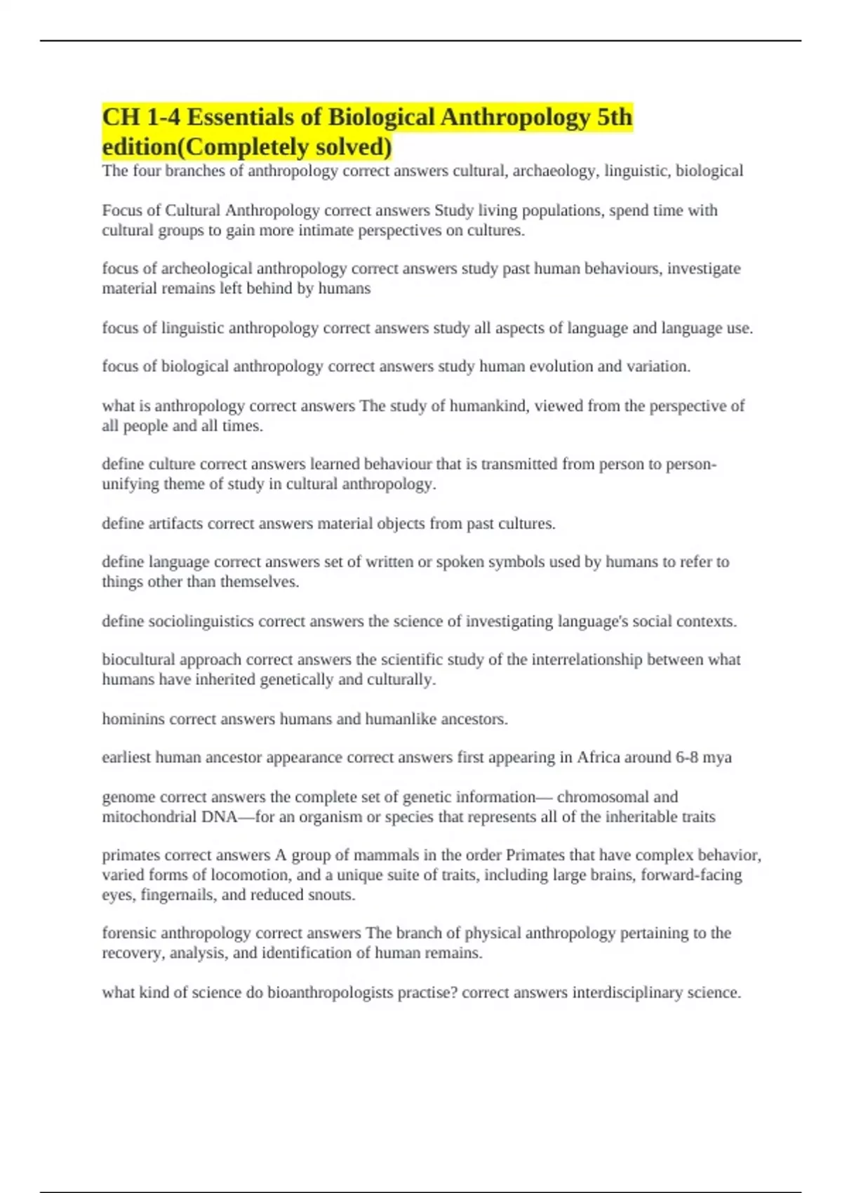 CH 1-4 Essentials of Biological Anthropology 5th edition(Completely solved)