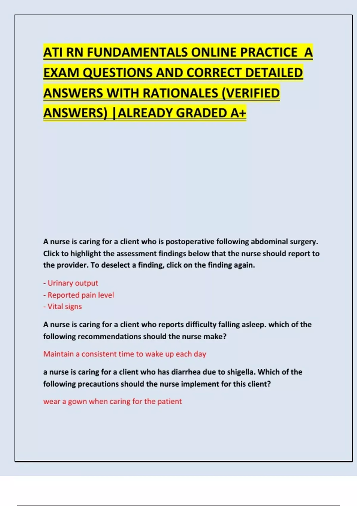 EXAM QUESTIONS AND CORRECT DETAILED