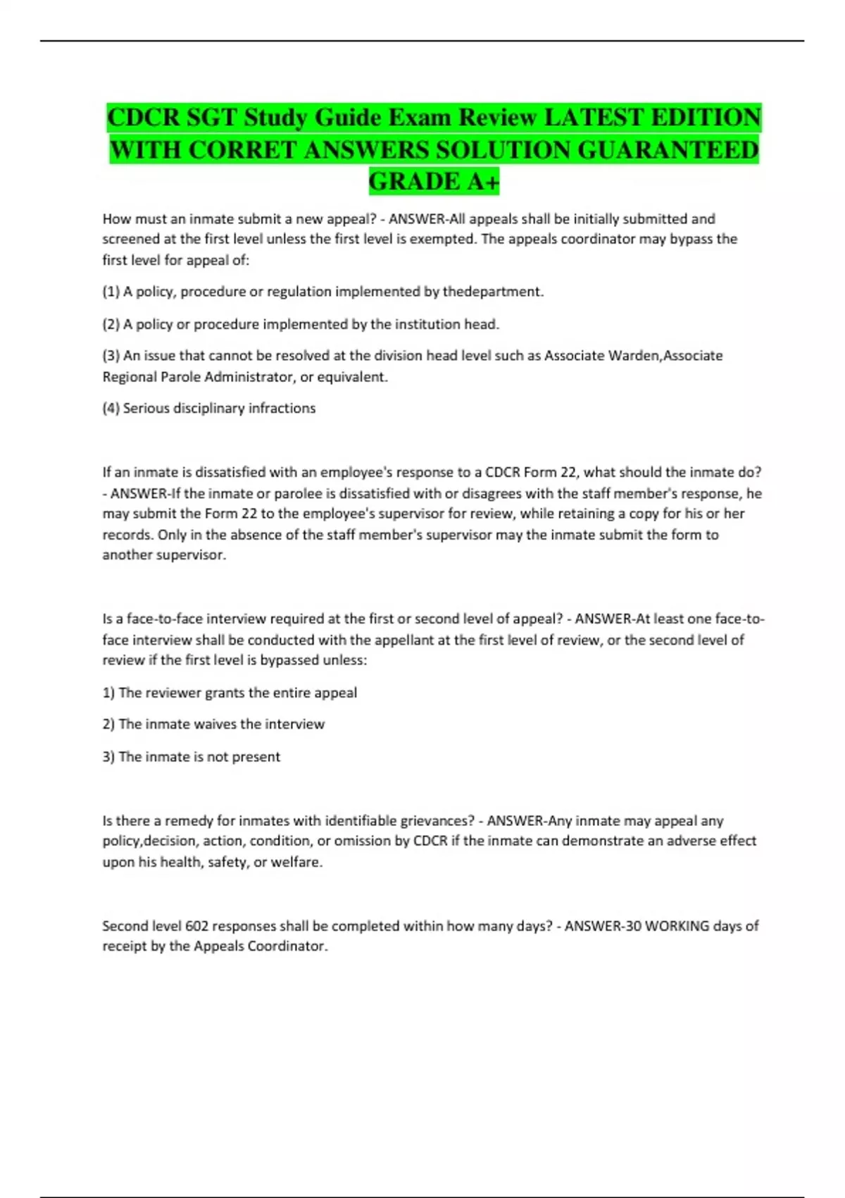 CDCR SGT Study Guide Exam Review LATEST EDITION