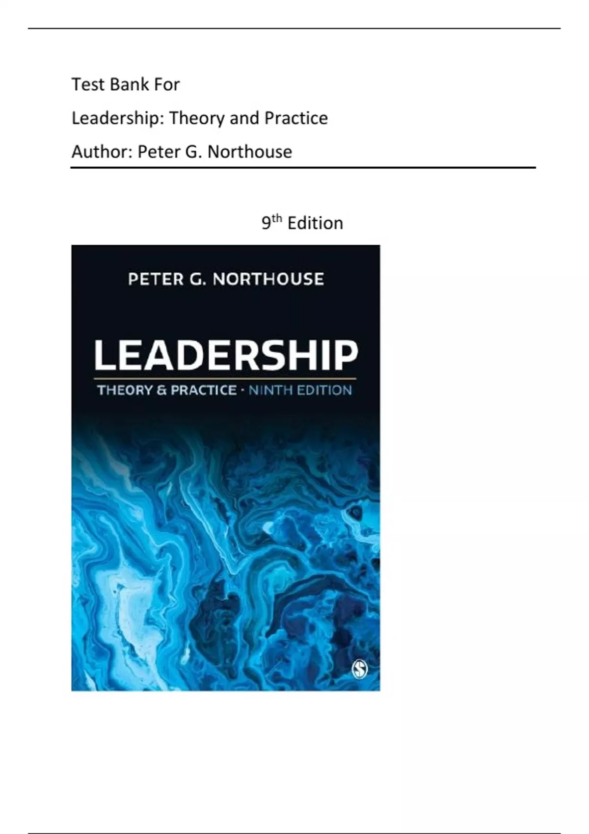 Test Bank For Leadership Theory and Practice 9th Edition by Peter G. Northouse | All Chapters | Latest Edition 2025