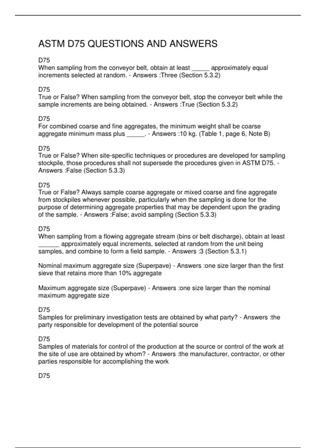 ASTM D75 QUESTIONS AND ANSWERS