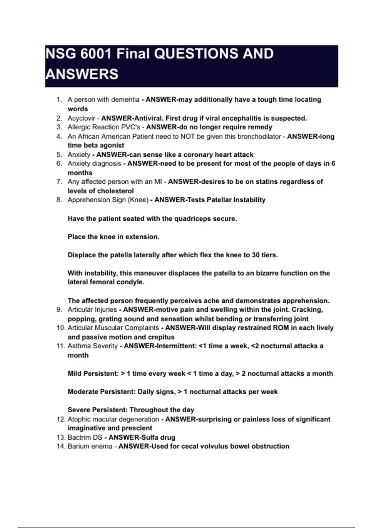 NSG 6001 Final QUESTIONS AND