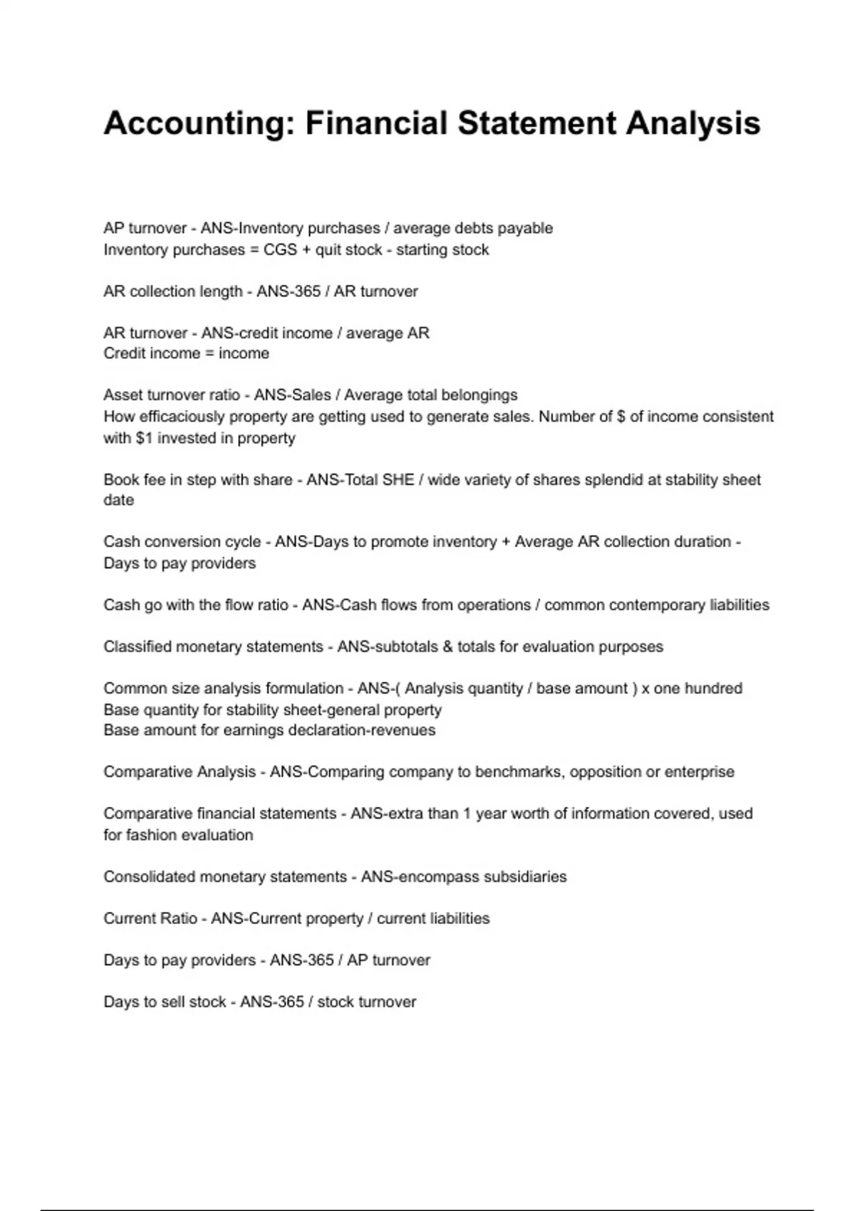 Common size analysis formulation - ANS-( Analysis quantity / base amount ) x one hundred