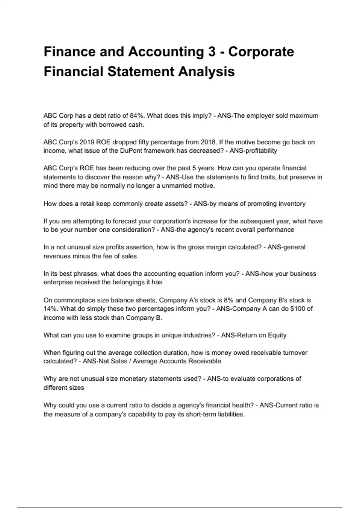 ABC Corp has a debt ratio of 84%. What does this imply? - ANS-The employer sold maximum