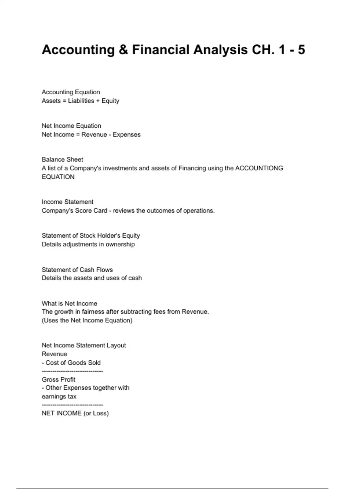 A list of a Company's investments and assets of Financing using the ACCOUNTIONG