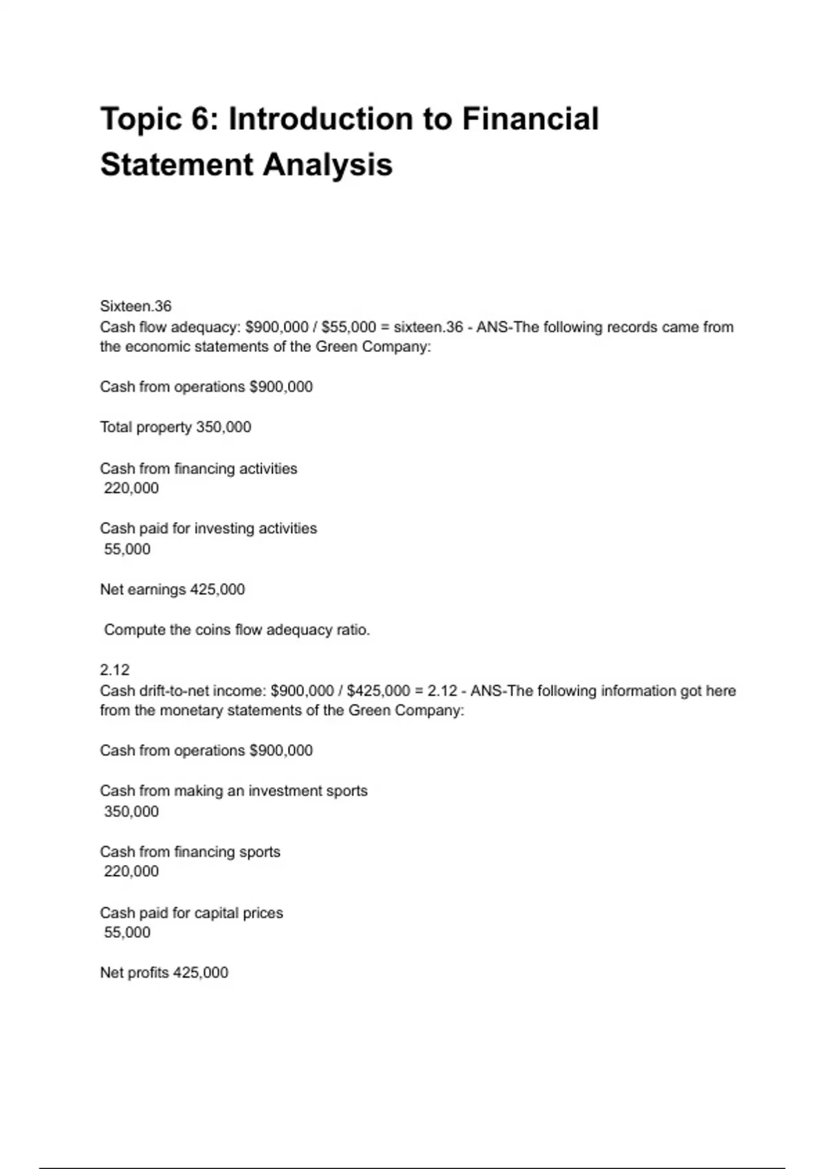 Cash flow adequacy: $900,000 / $55,000 = sixteen.36 - ANS-The following records came from