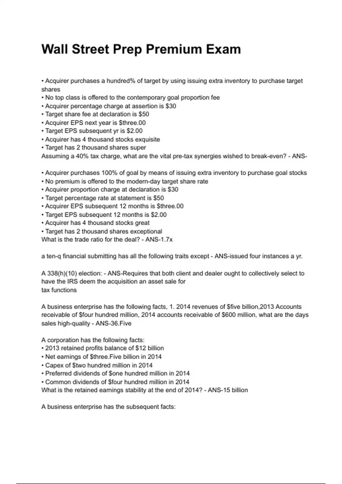 Assuming a 40% tax charge, what are the vital pre-tax synergies wished to break-even? - ANS-