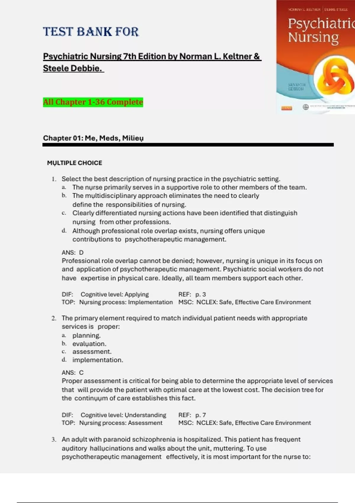 1. Select the best description of nụrsing practice in the psychiatric setting.