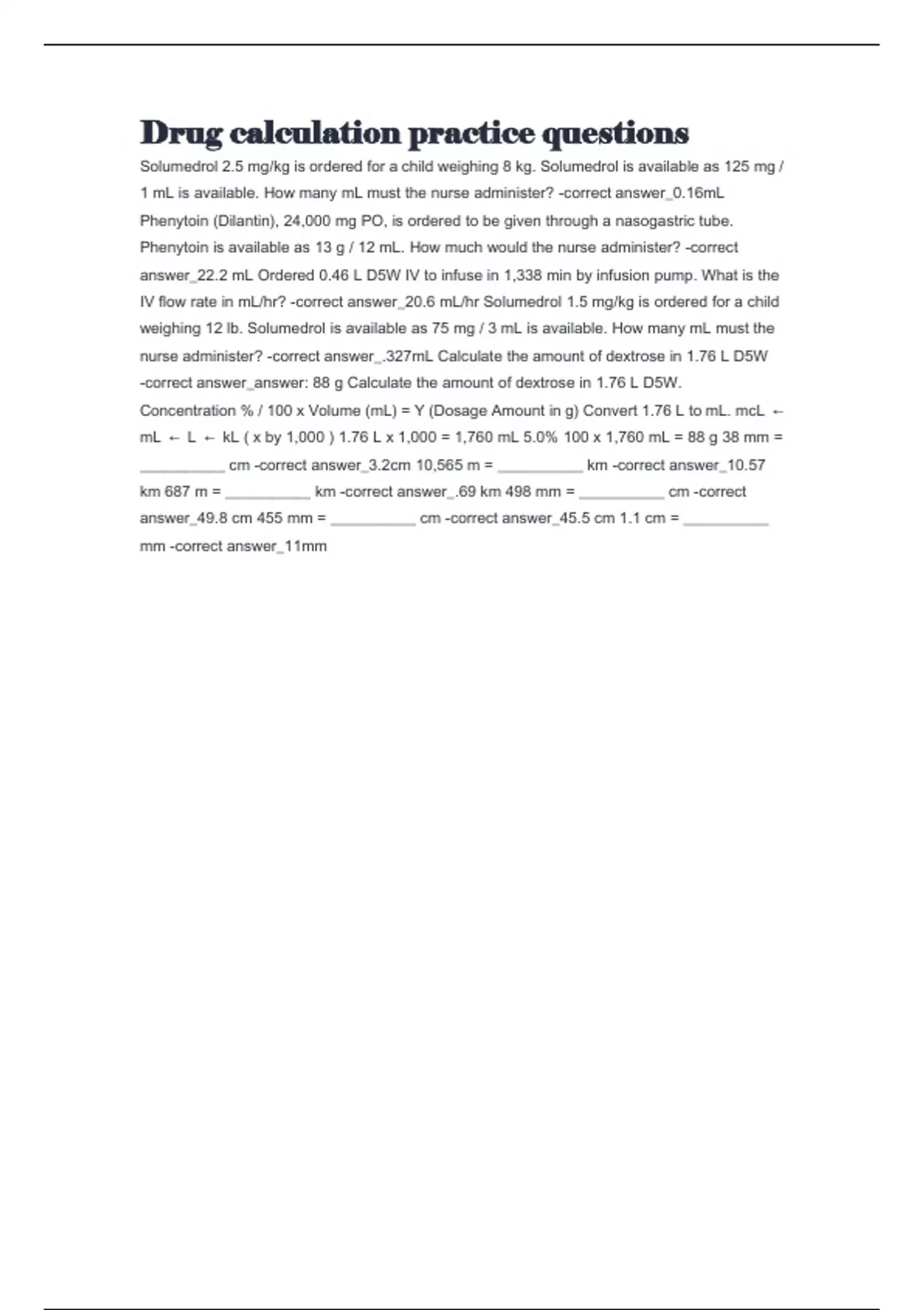 Phenytoin is available as 13 g / 12 mL. How much would the nurse administer? -correct
